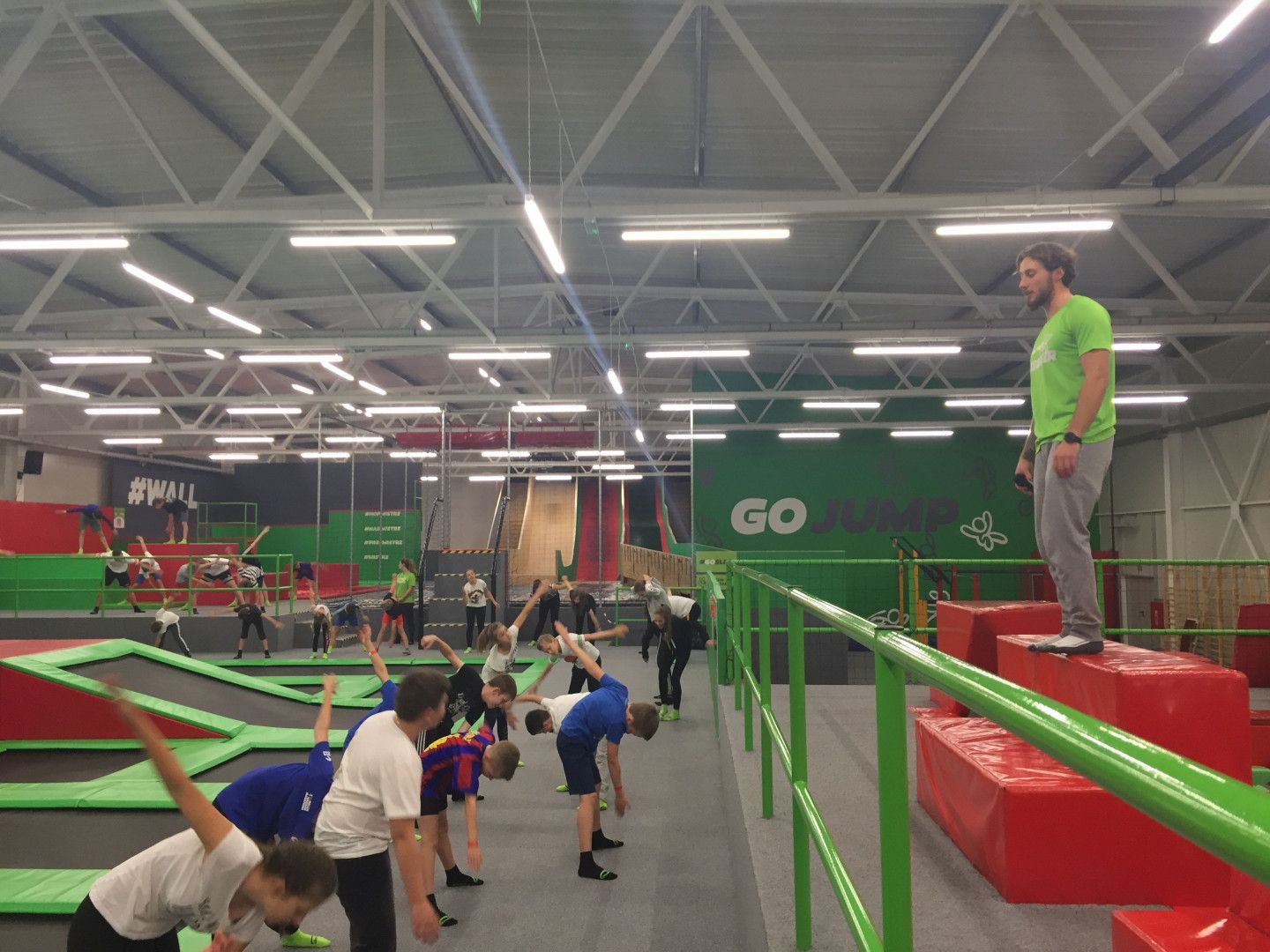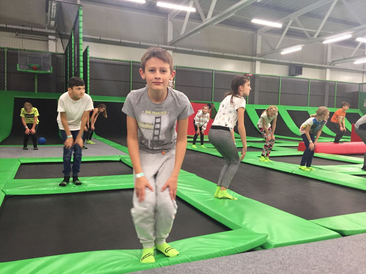 Kolejnym celem wyjazdu był Park Trampolin GoJump. Ta coraz bardziej popularna forma aktywności fizycznej dostarczyła uczestnikom wycieczki wielu niezapomnianych wrażeń. Po profesjonalnej rozgrzewce pod okiem instruktora, uczestnicy wycieczki korzystali z szeregu atrakcji, m.in. ścieżek akrobatycznych, koszów do wsadów, trampolin sportowych oraz basenów wypełnionych gąbkami. Pobyt w GoJump sprzyjał wyrabianiu nawyku aktywnego spędzania wolnego czasu, rozwijania zainteresowania sportem, a przede wszystkim uświadomił dzieciom, iż skoki na trampolinie to nie tylko wspaniała zabawa, ale również doskonałe ćwiczenie dla mięśni nóg.