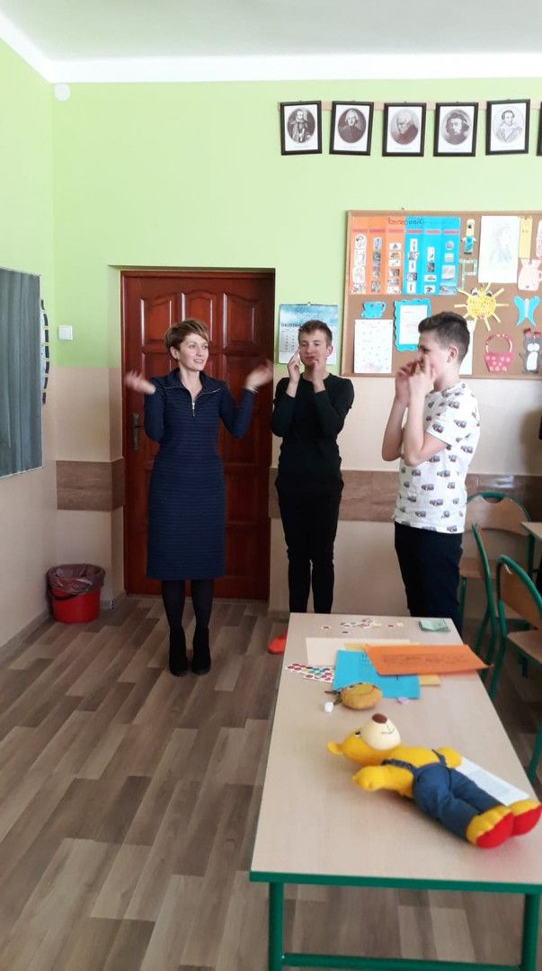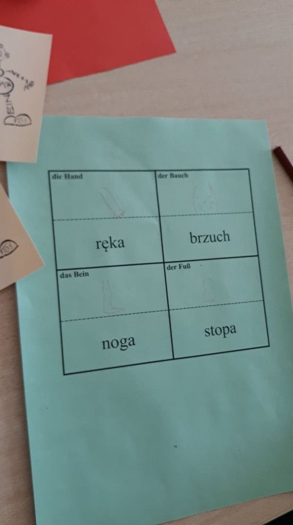 Lekcja, na której poznaliśmy części ciała w języku naszych zachodnich sąsiadów była bardzo ciekawa i bogata w różnorodne typy zadań, co ułatwiło przyswajanie przez uczniów nowego słownictwa. Bardzo dziękujemy pani dyrektor mgr Rozalii Kuchta za miłe przyjęcie naszej grupy oraz pani mgr Alicji Banat za zaproszenie i przeprowadzenie lekcji. Do zobaczenia w naszej szkole już wkrótce, gdzie to my będziemy gospodarzami, a Wy gośćmi.