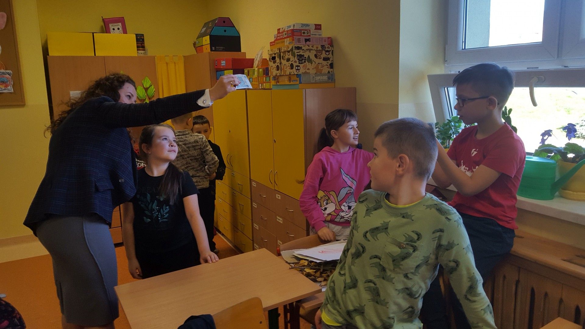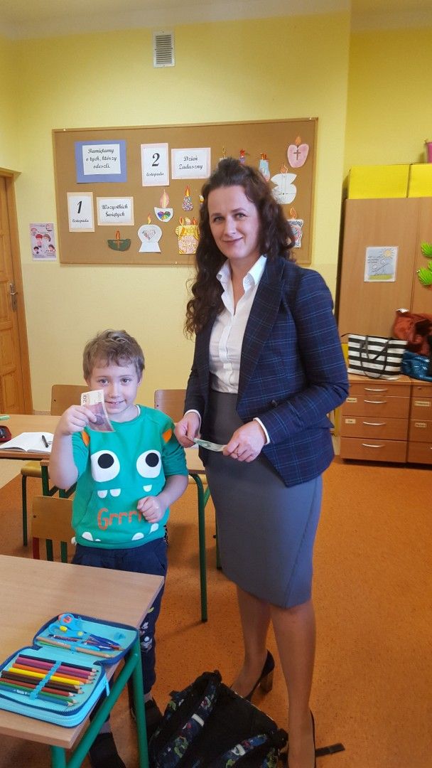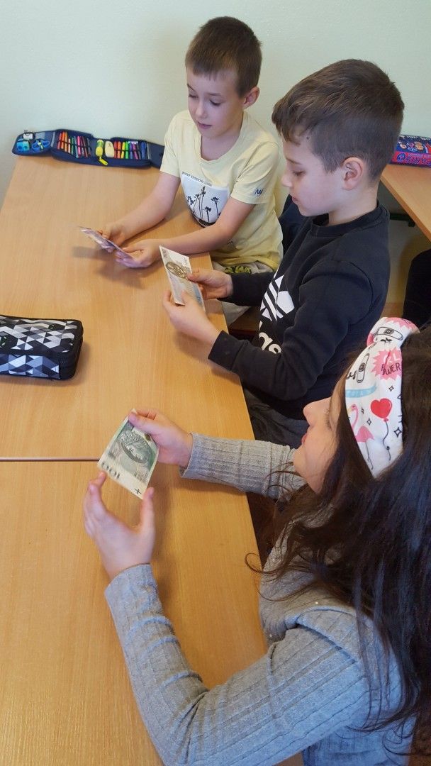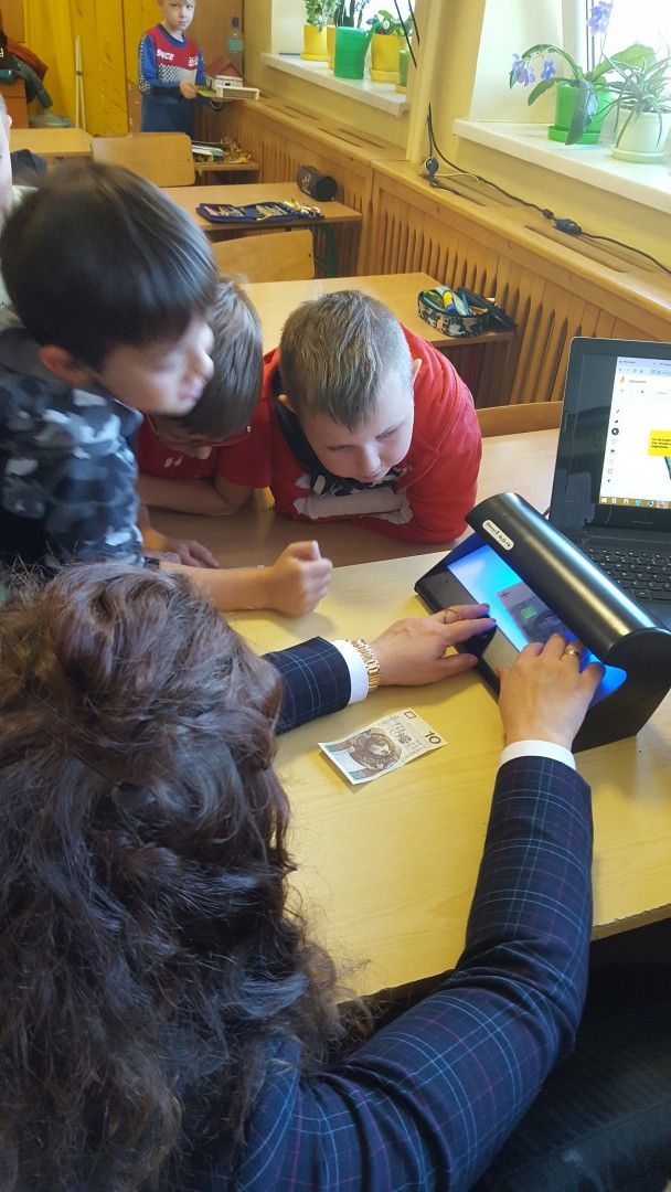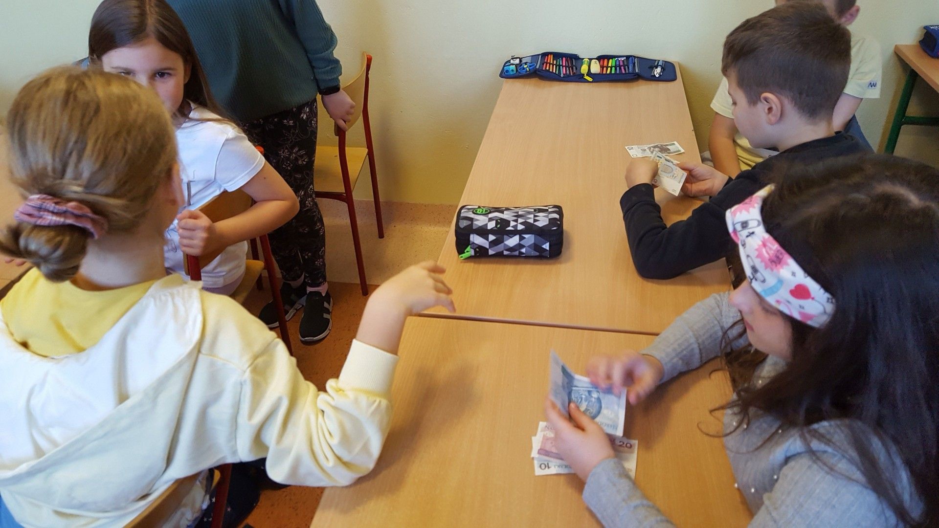 W tym roku szkolnym panie z banku, pani Kasia Stefanowicz i pani Małgosia Poręba, odwiedziły uczniów klasy IIb. Dzieci dowiedziały się dlaczego pieniądze są nam potrzebne i jakie są współczesne rodzaje pieniądza. Każdy uczeń mógł sprawdzić autentyczność banknotów za pomocą specjalnego urządzenia. Dzieci podczas rozmowy z prowadzącymi zajęcia wykazały się dużą wiedzą na temat polskich monet i banknotów. Za prawidłowe odpowiedzi uzyskały upominki.