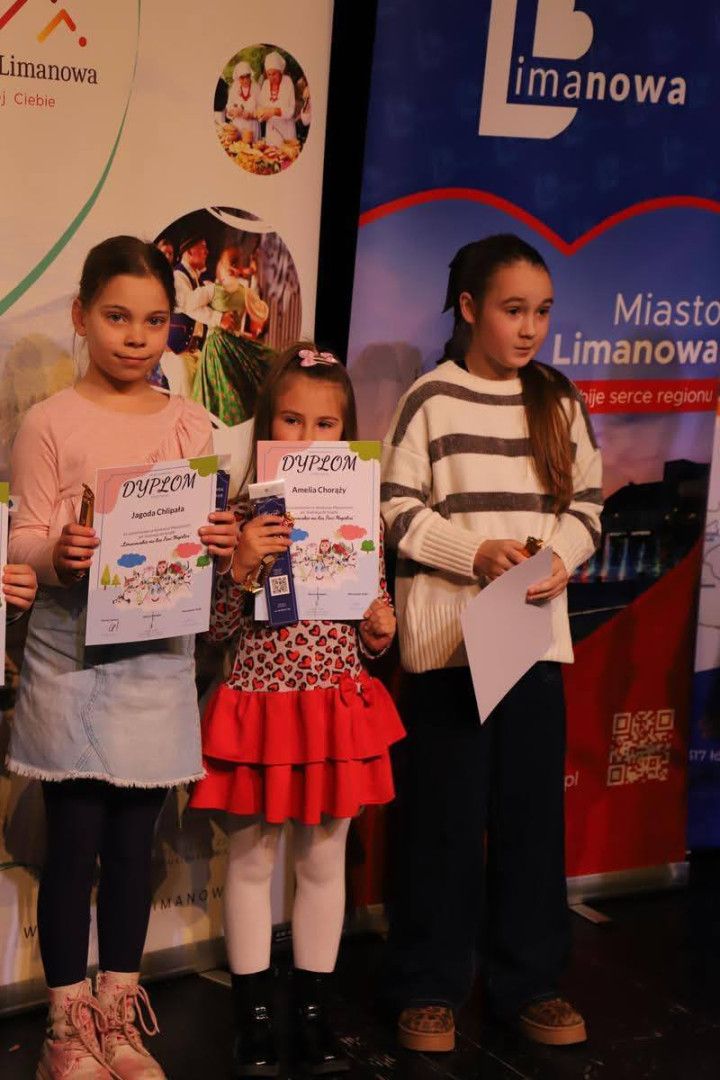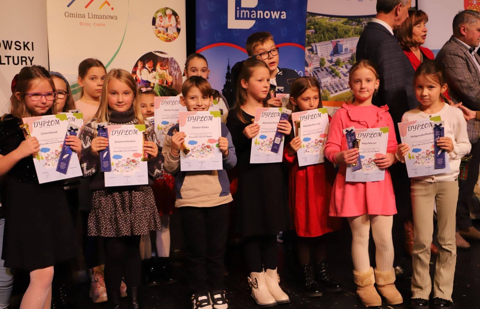 13 grudnia 2025 roku w Limanowskim Domu Kultury odbyło się uroczyste podsumowanie konkursu połączone z promocją książki. Wszyscy uczestnicy konkursu z naszej szkoły otrzymali imienne zaproszenia, a podczas gali: dyplomy, zakładki, wafelki oraz słodki poczęstunek. Było to dla nich niezapomniane przeżycie.