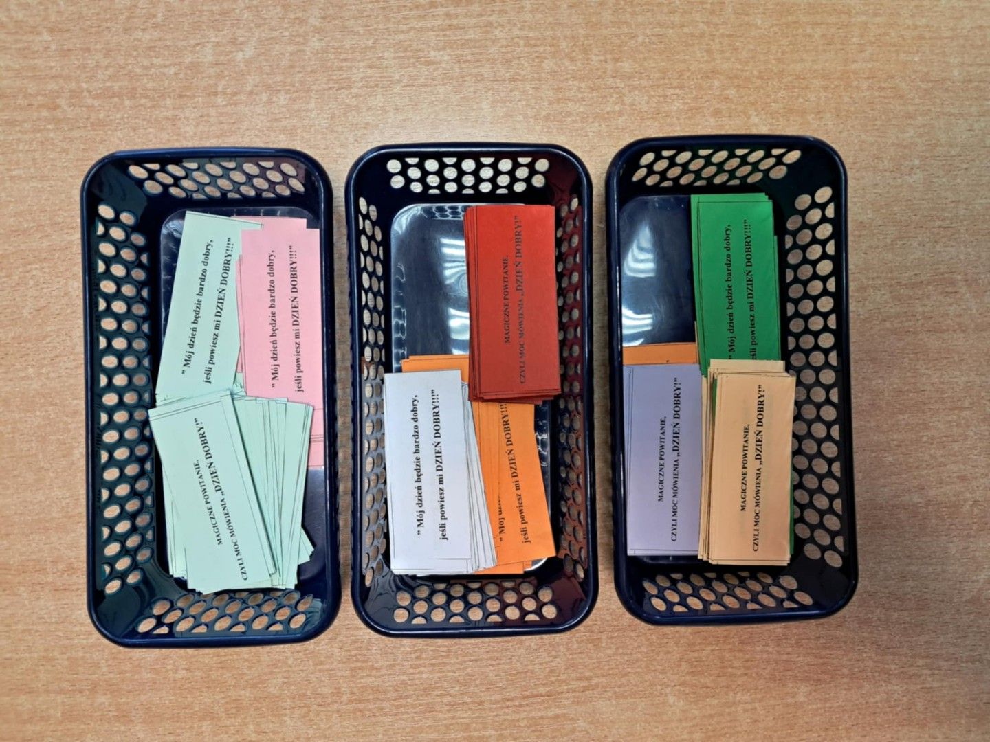 Przekonała się o tym społeczność naszej szkoły, gdy podczas akcji: Mów „Dzień dobry” na dzień dobry zachęcona została do wypróbowania „magicznej mocy” tych słów. W dniu 6 grudnia wszyscy uczniowie witani byli już przy bramie wejściowej do szkoły przez ich kolegów i koleżanki radosnym „DZIEŃ DOBRY!” oraz kolorowymi karteczkami przygotowanymi dla nich specjalnie na tę okazję. Na wizytówkach widniał zachęcający do powitania dwuwiersz: „Mój dzień będzie bardzo dobry, jeśli powiesz mi DZIEŃ DOBRY!”. W tych dniach podczas zajęć lekcyjnych w klasach odczytywane były również krótkie teksty literackie – opowiadania związane tematycznie z KULTURĄ CODZIENNEGO POWITANIA.