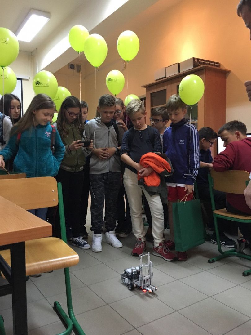 Kolejnym punktem programu był udział w zajęciach pt. „Chemia a środowisko”. Uczniowie dowiedzieli się, jak rozpoznać rodzaje i jakość różnych rodzajów wody, co jest istotne w ocenie jej dalszego wykorzystania. Podczas pokazów wykorzystany został wielofunkcyjny analizator z elektrodami, a także testy do szybkiego oznaczania wybranych wskaźników. Podczas Nocy Naukowców uczniowie wzięli udział także w konkursie matematycznym dla uczniów klas czwartych i piątych szkoły podstawowej. Zajęli: II miejsce – Albert Chudy z kl. Vb, III miejsce – Paulina Szewczyk z kl. Va. Dużą atrakcją okazał się żyroskopowy symulator dla kierujących. Kto chciał mógł przekonać się na własnej skórze, jak reaguje ciało podczas dachowania samochodem. Uczestnicy wyprawy odwiedzili również laboratorium, gdzie z wielkim zaciekawieniem obejrzeli pokaz programowalnych robotów.