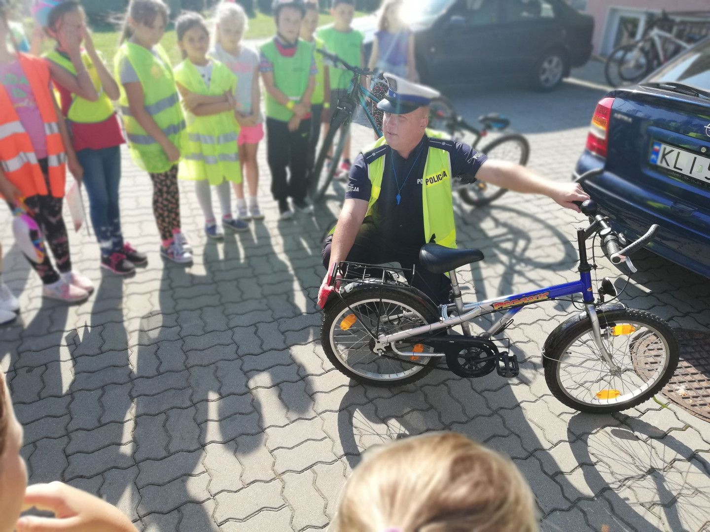 W tym niecodziennym dniu niespodzianek nie było końca. Atrakcją imprezy stał się również pokaz radiowozu policyjnego. Dzieciaki dla zaspokojenia własnej ciekawości, mogły obejrzeć pojazd od środka, usiąść za kierownicą, ubrać policyjną czapkę, a tym samym poczuć się przez chwilę jak prawdziwy policjant. Wiele wrażeń dostarczył dzieciom pokaz kajdanek, a smak wielkiej przygody dopełniła możliwość użycia sygnałów dźwiękowych.