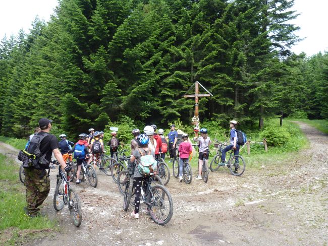 Trasa narciarstwa biegowego wokół Mogielicy jest atrakcyjna dla rowerzystów. Wycieczka, ze względu na malowniczą trasę i urozmaicenie terenu, była interesująca dla nas wszystkich- miłośników kolarstwa górskiego .Wycieczkę rozpoczęliśmy w Centrum Obsługi Ruchu Turystycznego przy LKS „Zalesianka” gdzie za darmo wypożyczyliśmy rowery. Trudności techniczne które czasem pojawiały się na trasie pomagał przezwyciężyć Pan Jacek Dunikowski i ks. Tomasz Szewczyk. Mogliśmy również odzyskać siły odpoczywając często po drodze. Trasa o długości kilkunastu kilometrów niemal w całości przebiegała szeroką bitą drogą. Przy leśniczówce Andrzeja Florka- jednego z najważniejszych miejsc na trasie mogliśmy posłuchać historii opowiadanych przez ks. Tomasza. Historii o żołnierzach cichociemnych , którzy tutaj stacjonowali. Przez większość trasy podziwialiśmy panoramę Gorców.