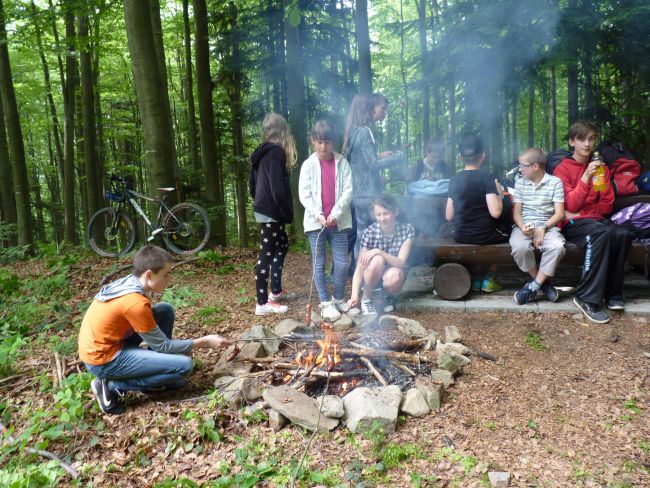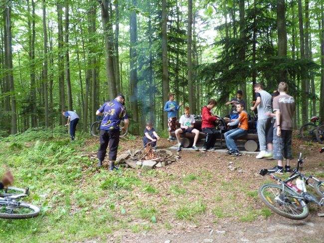 Dużą frajdę sprawiła nam droga powrotna, już bez wysiłku zjechaliśmy całą trasę . Mając wiatr we włosach i ciesząc się na myśl o wakacjach kiedy tego typu wycieczki będą mogły być na porządku dziennym. Jeszcze tylko mecz piłki nożnej na boisku w Zalesiu, bo wciąż wszyscy byli pełni energii i ognisko z pieczeniem kiełbasek, i wróciliśmy autokarem do Mordarki.