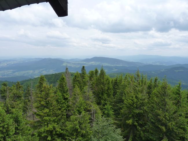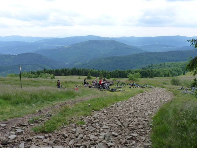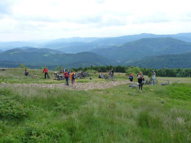 Mogielicę (1171 m n.p.m. - najwyższy szczyt Beskidu Wyspowego) zdobyliśmy już bez rowerów. Zostały one kilkadziesiąt metrów niżej na polanie.