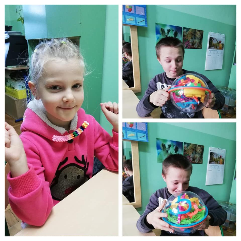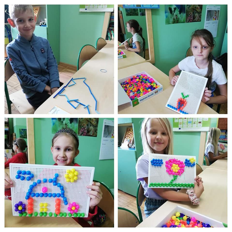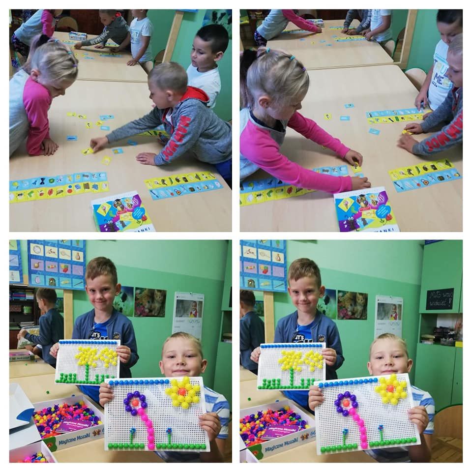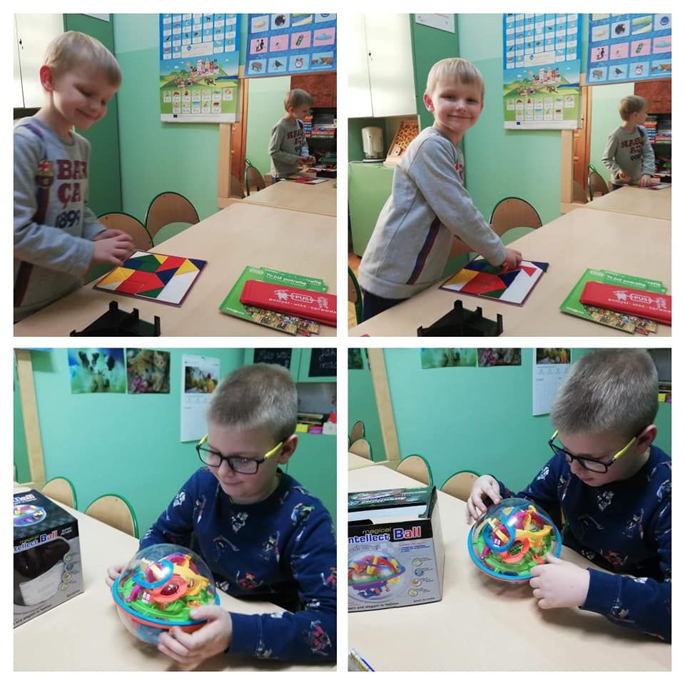 Dzieci rozwijały także koordynację wzrokowo-ruchową, koncentrację uwagi i myślenie podczas korzystania z gier słuchowych: „Bim bom”, „Dźwięki otoczenia”, „Co słychać?”, „Rymowanki”, gier planszowych: „Szachy”, „Mózg”, „Cztery w rzędzie”, ”Bystre oczko”, „Kto pozmywa”, „Tangramowe kształty”, „Kolory” czy odgadywania zagadek, memory, rozwiązywania układanek „Pomyśl Ułóż Sprawdź”, „Logico”, przechodzenia labiryntu kuli 3d oraz zamalowywania wg klucza zakodowanych obrazków.