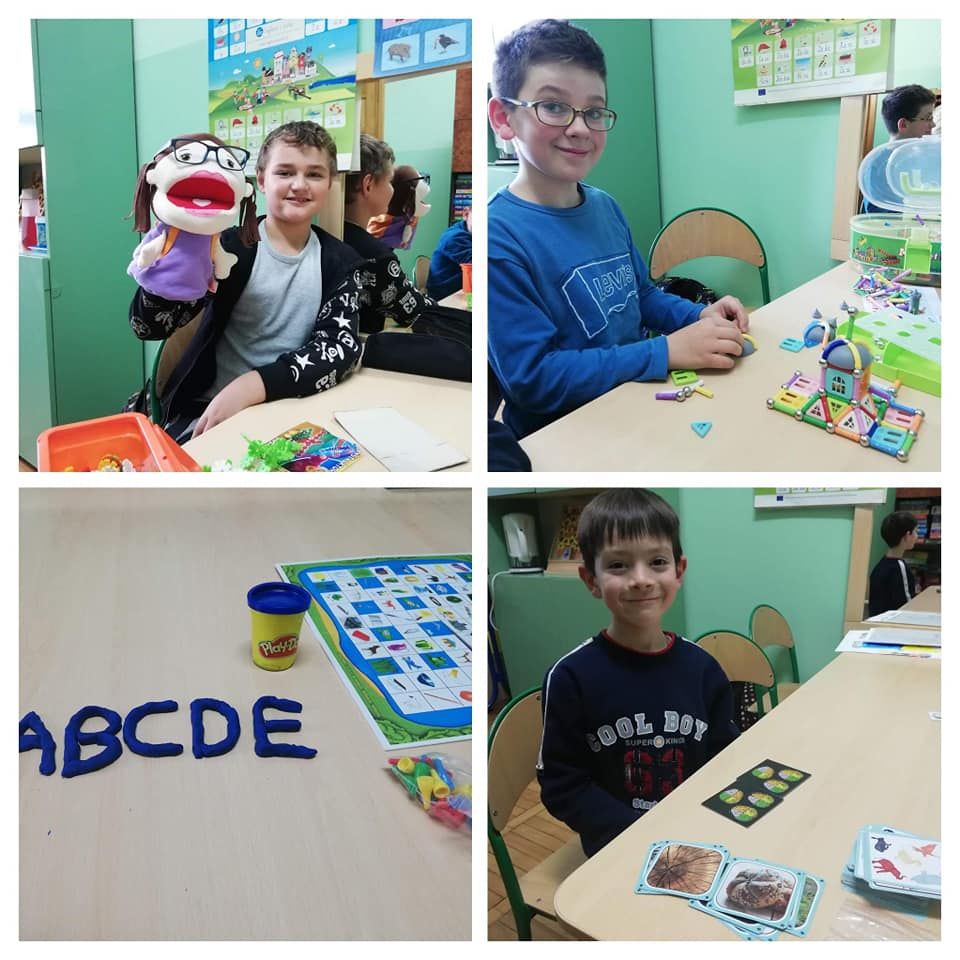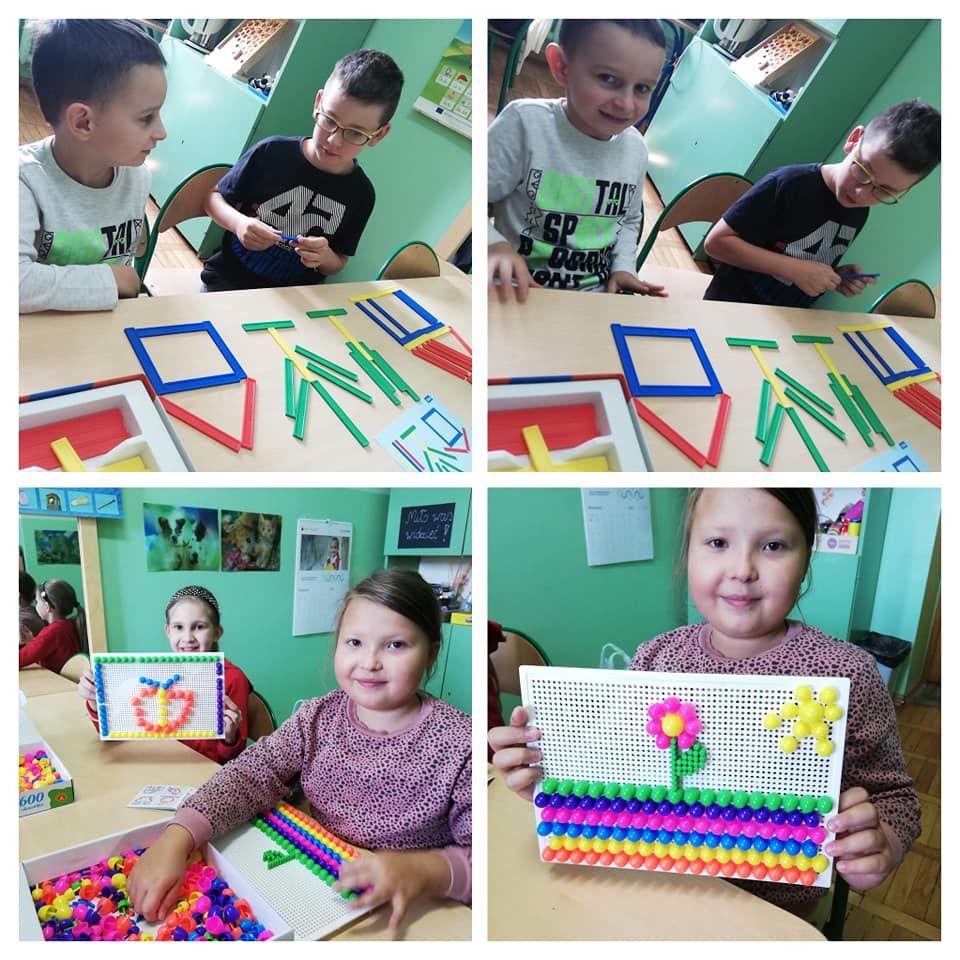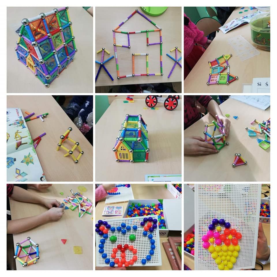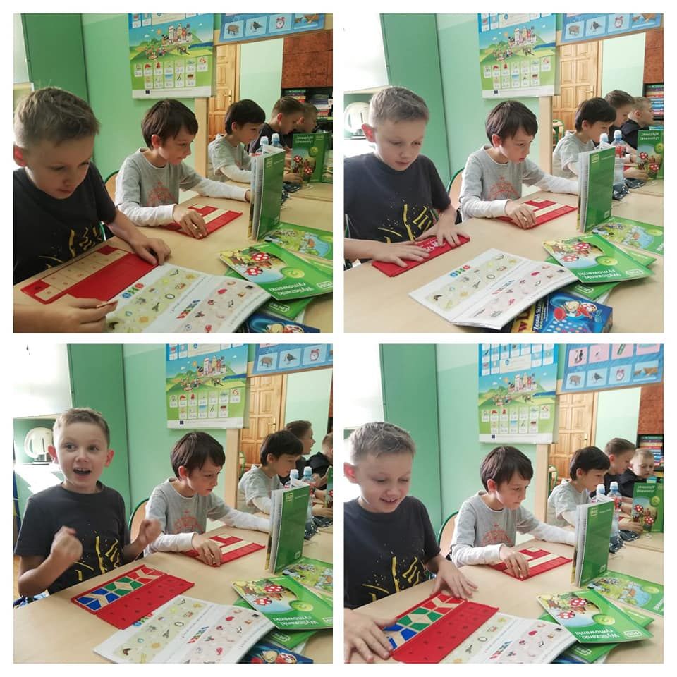 Dzieci rozwijały także koordynację wzrokowo-ruchową, koncentrację uwagi i myślenie podczas korzystania z gier słuchowych: „Bim bom”, „Dźwięki otoczenia”, „Co słychać?”, „Rymowanki”, gier planszowych: „Szachy”, „Mózg”, „Cztery w rzędzie”, ”Bystre oczko”, „Kto pozmywa”, „Tangramowe kształty”, „Kolory” czy odgadywania zagadek, memory, rozwiązywania układanek „Pomyśl Ułóż Sprawdź”, „Logico”, przechodzenia labiryntu kuli 3d oraz zamalowywania wg klucza zakodowanych obrazków.