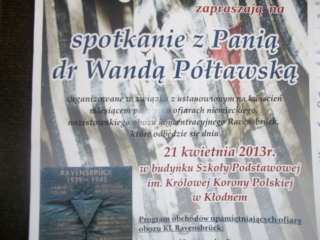 W niedzielę 21 kwietnia 2013 r. młodzież gimnazjalna ZS w Mordarce uczestniczyła w spotkaniu z dr. n. m. Wandą Półtawską. Jest to osoba niezwykła, charyzmatyczna, mimo swojego wieku i przeżyć. Do Kłodnego przybyła na specjalne zaproszenie dyrektora tejże szkoły mgr Romana Ciesielczyka, któremu leży na sercu wychowanie młodego pokolenia Polaków w duchu patriotycznym i chrześcijańskim. Miesiąc kwiecień uchwalony został przez Senat RP miesiącem pamięci ofiar nazistowskiego obozu koncentracyjnego w Ravensbrück, więźniarką którego była bohaterka spotkania.