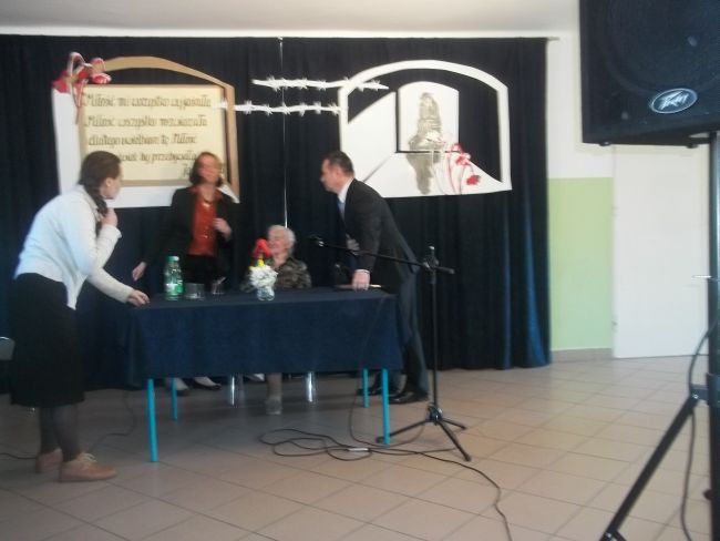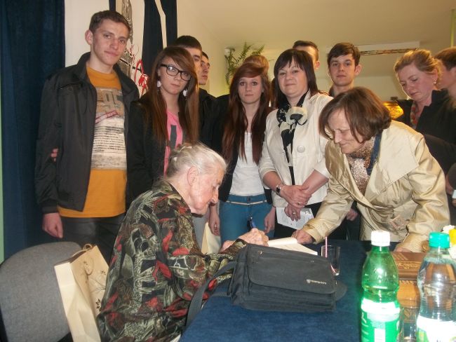 Młodzież zachwycona była spotkaniem i pozostała pod wielkim urokiem słów Pani Wandy, która przeplatała informacje związane z przeżyciami z obozu i opowieściami o przyjaźni z papieżem Janem Pawłem II, a zachętą kierowaną do młodych, aby wykazali wiele starań w poznaniu historii Ojczyzny i chęci stania się jej wiernymi PATRIOTAMI. Aby tak się stało, mówiła Pani Półtawska, potrzebne są młodym korzenie. Wychowanie w duchu miłości i wartości dadzą możliwość zakorzenienia , o które tak mocno apelował także  papież Polak. Młodzi mogą je osiągnąć stawiając przed sobą wymagania. Zachęcała zebranych a zwłaszcza uczniów do „ ZAKOCHANIA SIĘ WE WŁASNEJ OJCZYŹNIE” czego i ja gorąco życzę wszystkim dla naszego wspólnego dobra.