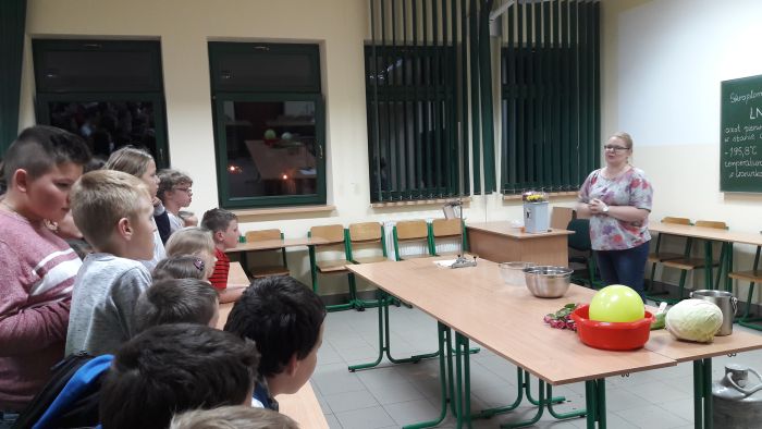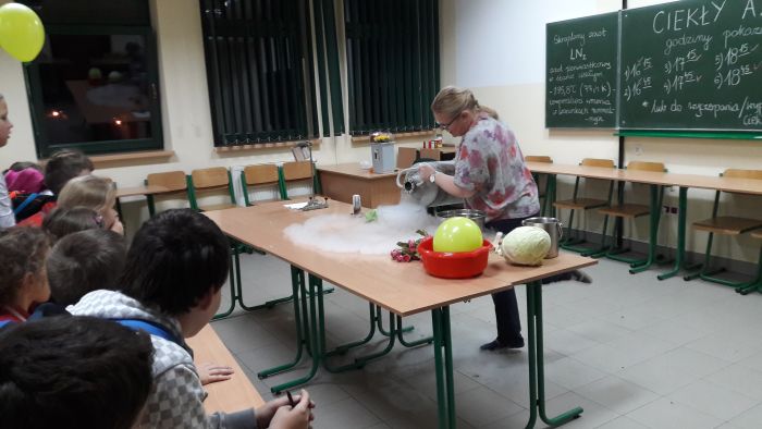 Tak jak w ubiegłych latach uczniowie uczestniczyli w pokazach, eksperymentach, spotkaniach z naukowcami i konkursach. Uczniowie wzięli udział w konkursie matematycznym uzyskując cenne nagrody. Zajęli: I miejsce –Teresa Opiela kl. VI, III miejsce – Kamil Bargieł kl. Va. Pozostali uczniowie odwiedzili Laboratorium Automatyki i Robotyki, gdzie z wielkim zaciekawieniem uczniowie obejrzeli pokaz programowalnych robotów. Duże zainteresowanie młodych naukowców wzbudziła drukarka 3D. Na pamiątkę uczniowie otrzymali wydrukowane plastikowe figurki. Kolejnym ciekawym punktem programu był pokaz z ciekłym azotem. Uczniowie byli zachwyceni, gdy prowadząca w trakcie pokazu różę i kapustę zamieniła w strukturę podobną do szkła. Rzucone na ziemię rozbiły się na kawałki. Po pokazie uczniowie mieli okazję sprawdzić, jak działają prawa fizyki w zabawkach pod okiem dr Krzysztofa Chyli.