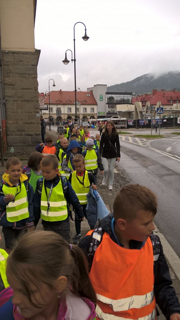 Kolejnym celem wycieczki było utrwalenie zasad bezpiecznego poruszania się po drogach - w szczególności umiejętność bezpiecznego przechodzenia przez jezdnię, skrzyżowanie, rozpoznawanie mijanych znaków drogowych, umiejętność zachowania się w miejscu o natężonym ruchu drogowym.