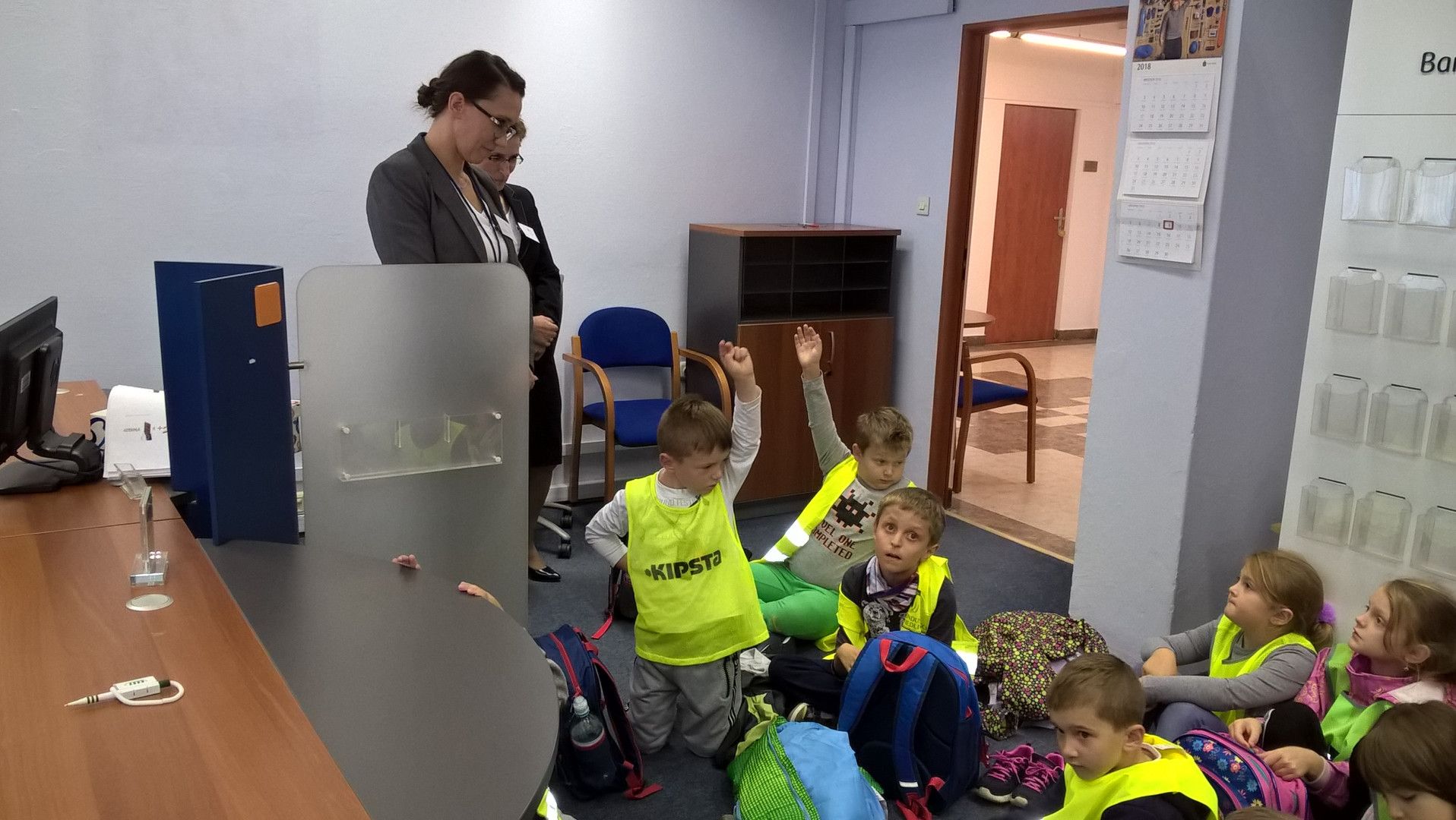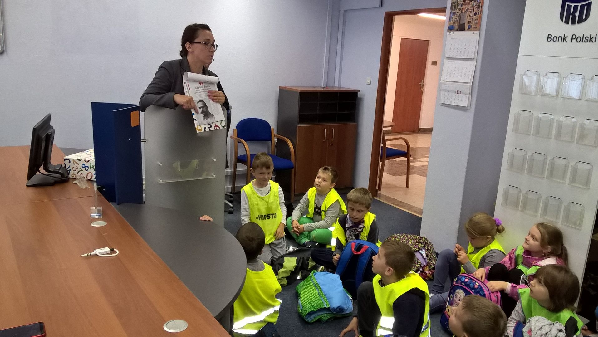 Pani Katarzyna przekazała uczniom wiele cennych i ciekawych informacji dotyczących m.in.: historii powstania banku, zasad działania placówki, korzyści z oszczędzania pieniędzy. Dzieci podczas spotkania były bardzo aktywne, chętnie dzieliły się swoim doświadczeniem i wiedzą z zakresu bankowości. W trosce o zwiększenie bezpieczeństwa najmłodszych oraz w nagrodę za ich zaangażowanie i wiedzę uczniowie zostali wyposażeni w odblaski, a także: smyczki, ołówki, breloczki. Dziękujemy bardzo za tak wspaniałe przyjęcie i przekazaną wiedzę.