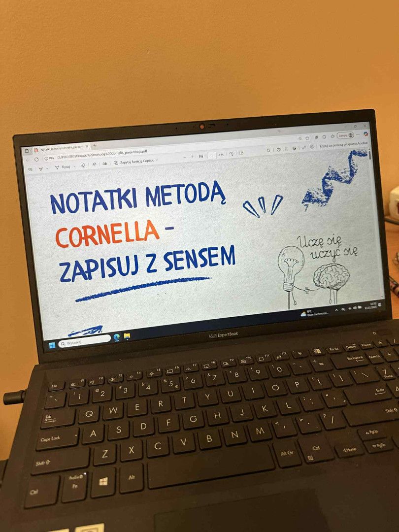 Podczas zajęć uczniowie poznali metodę Cornella i uczyli się tworzyć przejrzyste, logiczne notatki. Pracując z różnymi materiałami edukacyjnymi, zapisywali najważniejsze informacje, formułowali pytania oraz tworzyli krótkie podsumowania. W ten sposób ćwiczyli świadome notowanie, lepsze rozumienie treści oraz skuteczne porządkowanie i utrwalanie wiedzy.