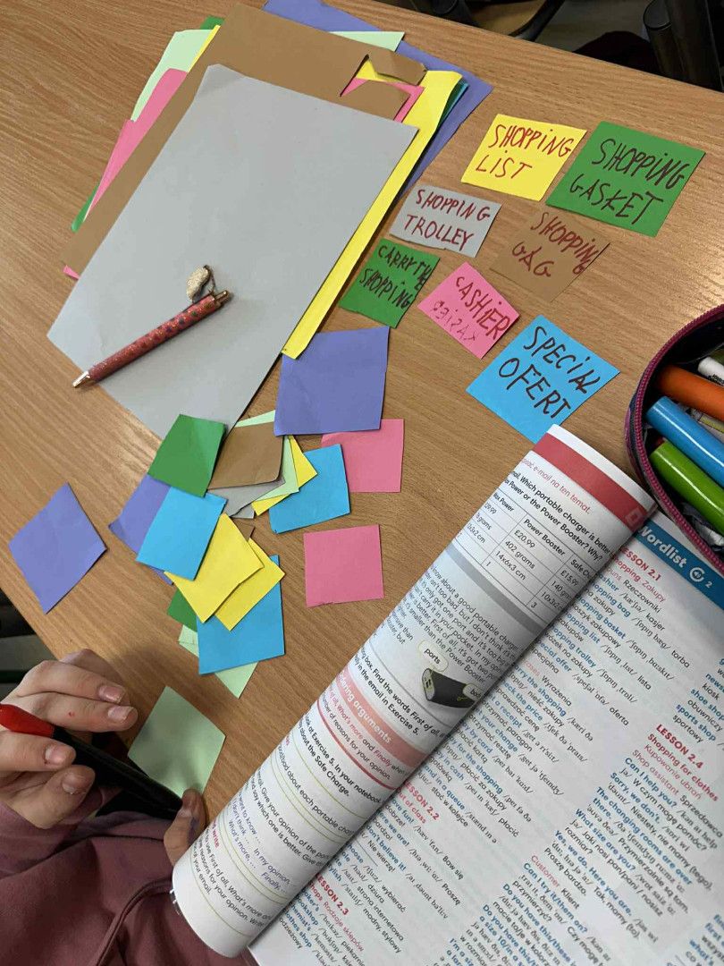 Podczas zajęć uczniowie stworzyli własne zestawy fiszek, które pomagają w zapamiętywaniu pojęć, słówek i definicji. Nauczyli się też, jak korzystać z fiszek w sposób systematyczny, by utrwalać wiedzę.