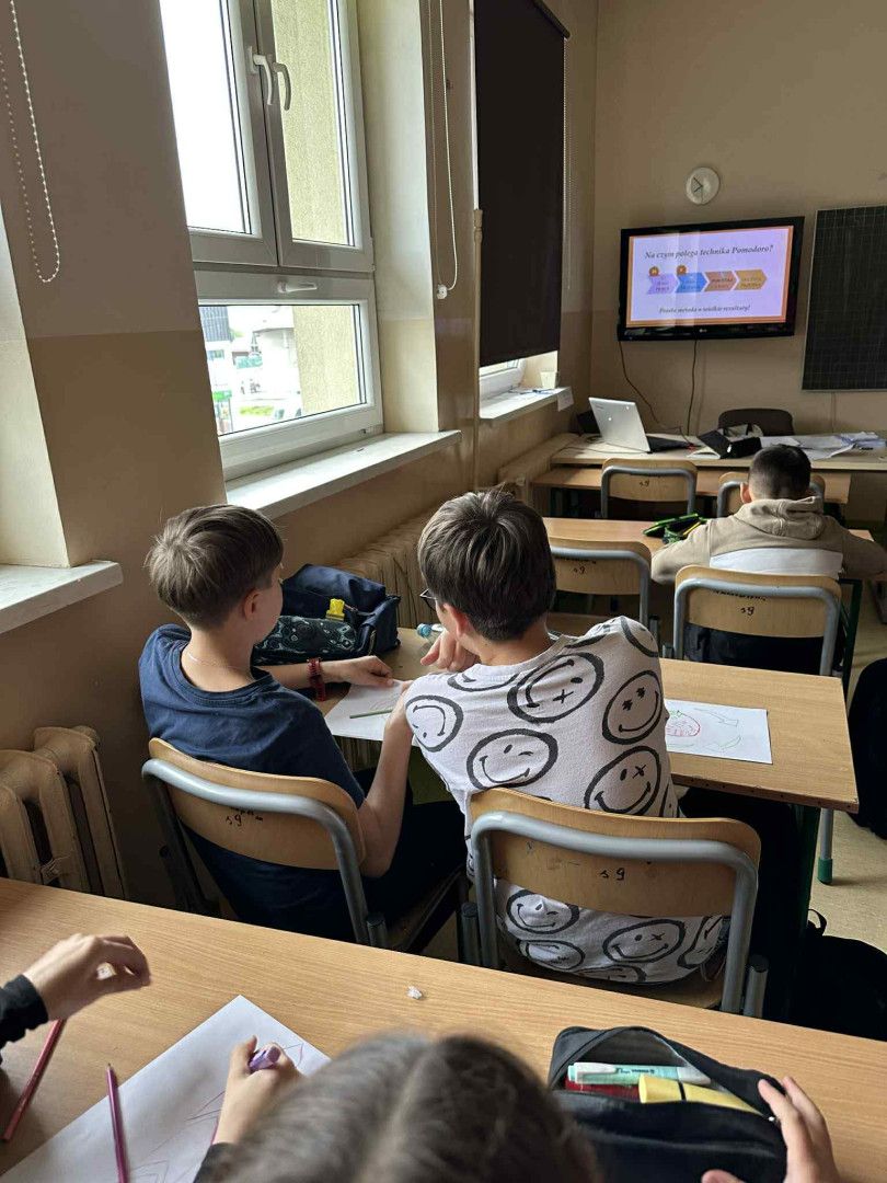 Uczniowie poznali technikę Pomodoro, polegającą na nauce w 25-minutowych blokach z krótkimi przerwami. Dzięki temu zrozumieli, jak zarządzać czasem i utrzymać koncentrację podczas nauki.