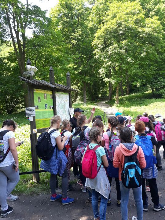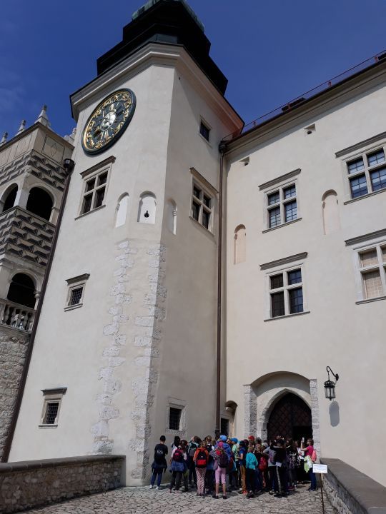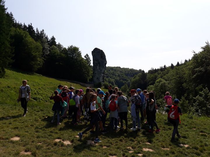 W maju uczniowie klas piątych udali się na wycieczkę do Ojcowa. To niezwykle urokliwe miejsce przywitało nas piękną pogodą, zachwyciło bogactwem przyrody i … spokojem. Na początek zobaczyliśmy Zamek w Pieskowej Skale i sąsiadującą Maczugę Herkulesa. Z dziedzińca zamku mogliśmy podziwiać malowniczą Dolinę Prądnika. Następnie udaliśmy się na spacer po Ojcowskim Parku Narodowym. Po drodze, duże wrażenie zrobiła na nas Kaplica „Na Wodzie” oraz okazałe skały wapienne.