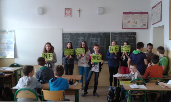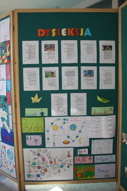 W ramach realizacji Tygodnia Świadomości Dysleksji uczniowie obejrzeli film, pokazujący w przystępny sposób problem specyficznych trudności w czytaniu i pisaniu oraz dysleksji rozwojowej - jak się objawia, jakie za sobą pociąga konsekwencje. Mogli także usłyszeć historie dzieci, dowodzące, jak można pokonać trudności, stając się na przykład mistrzem w literowaniu i czytaniu. W trakcie oglądania filmu uczniowie wykonywali zadania, pozwalające usprawnić notowanie, zapamiętywanie i rozumienie treści przekazanych w filmie, na przykład wiedzy o przyczynach i mechanizmach dysleksji. Na kartach pracy pojawiły się mapy myślowe, kolorowe podpisy i zaznaczenia, piktogramy i kody łatwe do odczytania dla piszących. Następnie wszyscy bawili się w trening wypowiedzi w oparciu o tak sporządzone notatki. W ramach akcji uczniowie poznali również sylwetki słynnych dyslektyków, którzy pomimo trudności w opanowaniu umiejętności czytania i pisania, dzięki swojej wytrwałości i determinacji, osiągnęli życiowy sukces. Na korytarzu szkolnym znajdowała się gazetka informacyjno-edukacyjna przeznaczona dla całej społeczności szkolnej, zawierała najważniejsze informacje z zakresu tematyki dysleksji. Podczas trwania Tygodnia Świadomości Dysleksji w sali terapii pedagogicznej wystawione były słowniczki ortograficzne wykonane przez uczniów, gazetka ścienna prezentowała najnowsze wiadomości, publikacje, kontakty z instytucjami wspierającymi osoby z dysleksją.