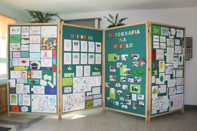 Na koniec uczniowie i nauczyciele przygotowali ciekawy opis i okazałą wystawę prac związaną z realizacją programu, którą wyeksponowali na głównym holu szkoły. Uczniowie samodzielnie stworzyli słowniczki najczęściej popełnianych błędów z wykorzystaniem komputera, a także krzyżówki, ortogramy, wyplatanki, wyszywanki, wyklejanki, modele przestrzenne i origami oraz rysunki przedstawiające frazeologizmy. Podczas pracy grupowej przygotowali także ciekawe gry ortograficzne. Przygotowane prace były z zainteresowaniem oglądane i życzliwie komentowane przez społeczność szkolną oraz rodziców.