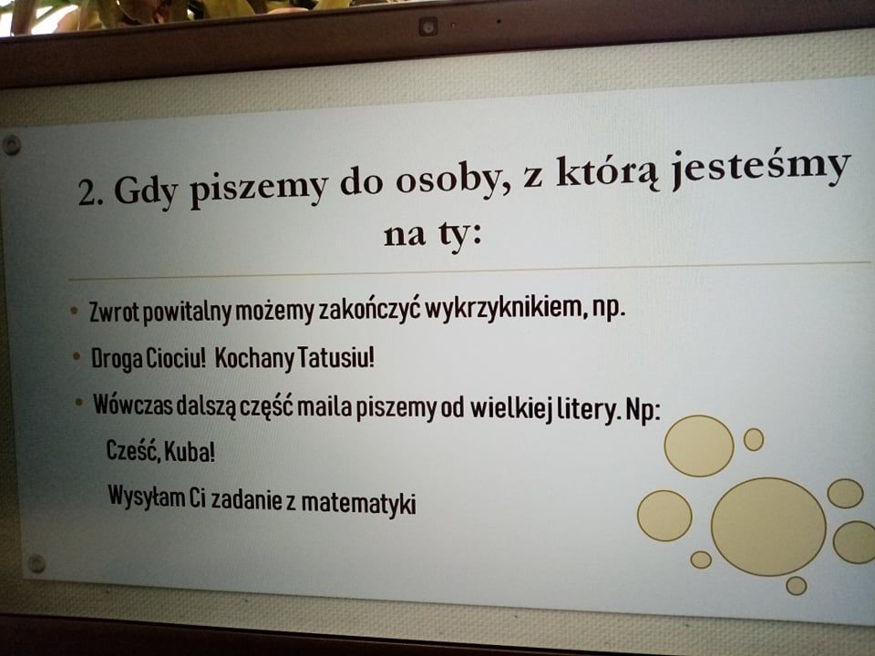 Jest on kontynuacją pierwszego odcinka i porusza problem interpunkcji i ortografii w e-mailu oficjalnym. Dlaczego tytuł peer learning? – ponieważ jest to metoda polegająca na uczeniu się od siebie osób o podobnym poziomie doświadczenia, czyli mówiąc najprościej uczniowie przekazują wiedzę uczniom. Tylko 2 minuty nagrania, a kilka godzin pracy. Uczniowie musieli wykazać się umiejętnością korzystania z różnych źródeł, czytania ze zrozumieniem, selekcji informacji, aby przygotować krótki materiał do audycji. Następnie dzięki umiejętności posługiwania się TIK, wykorzystując sprzęt zakupiony w ramach projektu „Modelowa Szkoła, opracowali prezentację multimedialną oraz nagrali krótką audycję. Mam nadzieję, że te dwa odcinki dotyczące redagowania e-maili okażą się przydatne i inni uczniowie skorzystają z praktycznych porad swoich rówieśników.