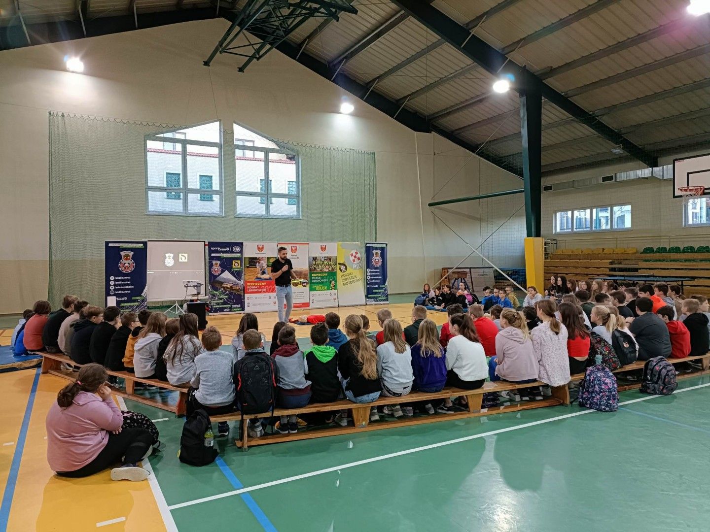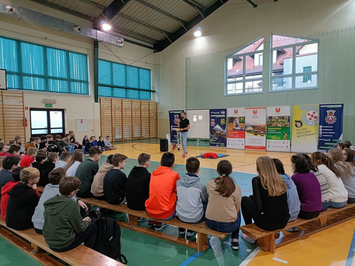 Młodzież dowiedziała się jakie są elementy bezpieczeństwa ratownika. Największym walorem wydarzenia była praktyczna część spotkania. Uczniowie przeszli szkolenie w zakresie postępowania w sytuacji zagrożenia. Każdy z nich miał możliwość udzielenia resuscytacji na fantomie. Dodatkowo młodzież otrzymała elementy odblaskowe. Celem organizatorów było podniesienie świadomości w zakresie bezpieczeństwa na drodze i wykształcenie nawyków takich jak m.in. noszenie odblasków. Nasi uczniowie będą "świecić przykładem" i mogą już czuć się bezpiecznie na drodze!