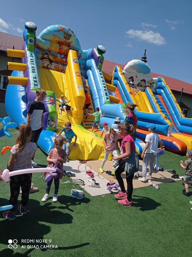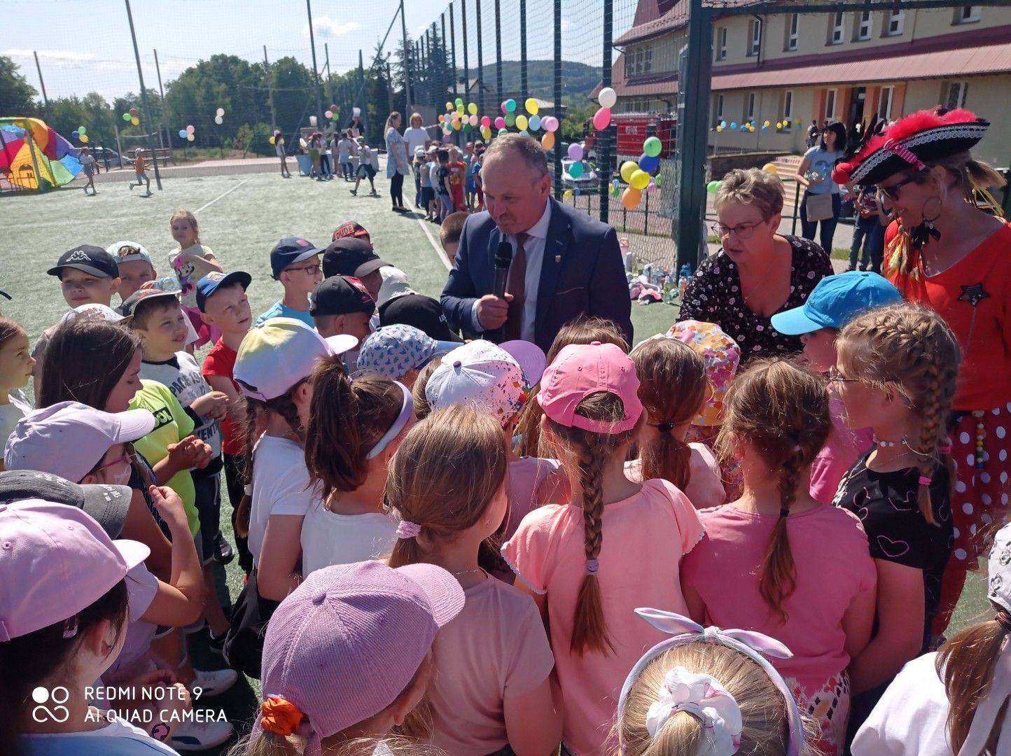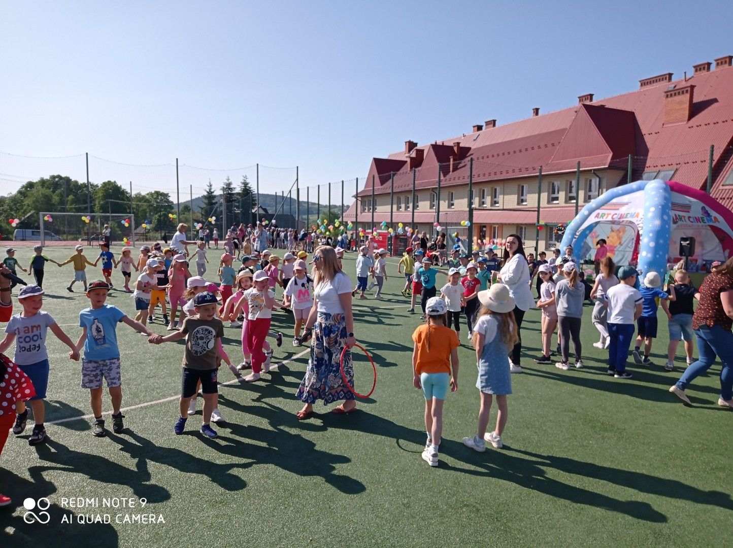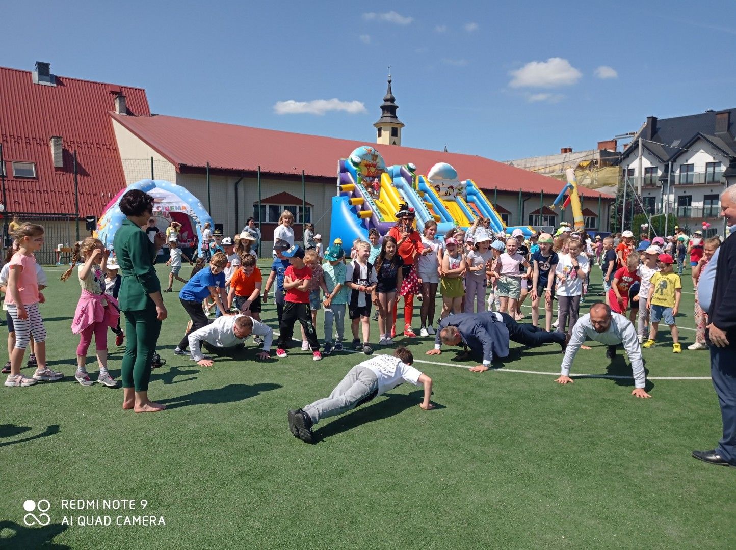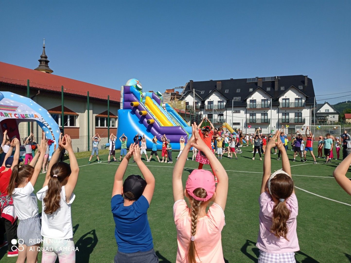 Dzień 1 czerwca, czyli Dzień Dziecka uczniowie z klas IV-VIII również spędzali aktywnie na świeżym powietrzu. Dzieci i młodzież sprawdzała swoje umiejętności między innymi w biegu przez płotki czy w rzucie do kosza. Każda klasa stworzyła swoją flagę! Odbył się również turniej siatkówki. Ogromnym zainteresowaniem jednak cieszyła się baloniada! Natomiast Rada Rodziców działająca w naszej szkole przygotowała dla uczestników imprezy smacznego grilla, ale nie zabrakło również smakołyków w postaci lodów i ciasteczek! Zabawa była świetna!