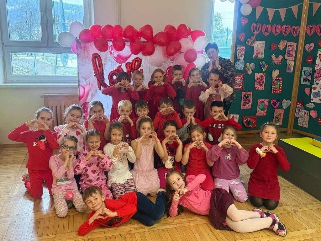 - Poczta walentynkowa – przygotowanie z uczniami 1-3 walentynek na gazetce.