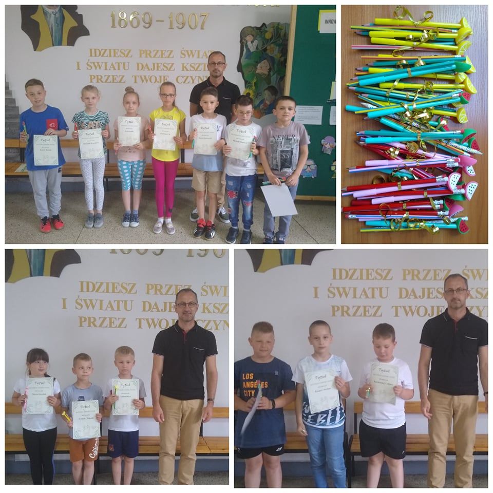 Pod koniec roku szkolnego nastąpiło sprawdzenie i utrwalenie wiadomości, a także wręczenie dyplomów i upominków dla Mistrzów savoir- vivre. Przedszkolaki wykonały zadania, które były zawarte w liście od koordynatora innowacji. Oczywiście dzieci poradziły sobie z zadaniami prawidłowo i każdy z nich otrzymał upominek. Uczniowie klas 1-3 rozwiązali test ze znajomości zasad savoir-vivre. Uczniowie, którzy bezbłędnie go uzupełnili otrzymali dyplomy Mistrza savoir- vivre oraz nagrody.