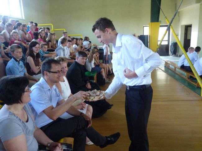 Gimnazjalne projekty edukacyjne w roku szkolnym 2012/2013 zostały podsumowane podczas obchodów „Dnia Języków Obcych”. Nie bez powodu tegorocznym hasłem tego dnia była parafraza słów „Co możemy dać Europie?”. Ubiegłoroczny Dzień Języków Obcych poświęcony był kulturze i informacji o wybranych państwach Europy. W tym roku zaprezentowaliśmy zatem interdyscyplinarny projekt realizowany przez uczniów klasy II A gimnazjum pt. „ Co pokażemy rówieśnikom przybyłym z zagranicy w swojej miejscowości?”, prezentujący historię , kulturę, tradycje i zwyczaje naszej miejscowości tłumaczone także na języki: angielski, niemiecki i francuski.
