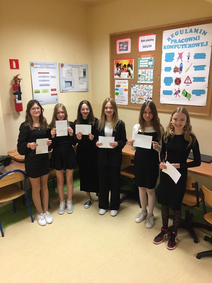 oraz Faustyna Biel, Kamila Kęska, Fabian Pietrzak, Karol Rosiek i Julia Zelek z klasy VIb