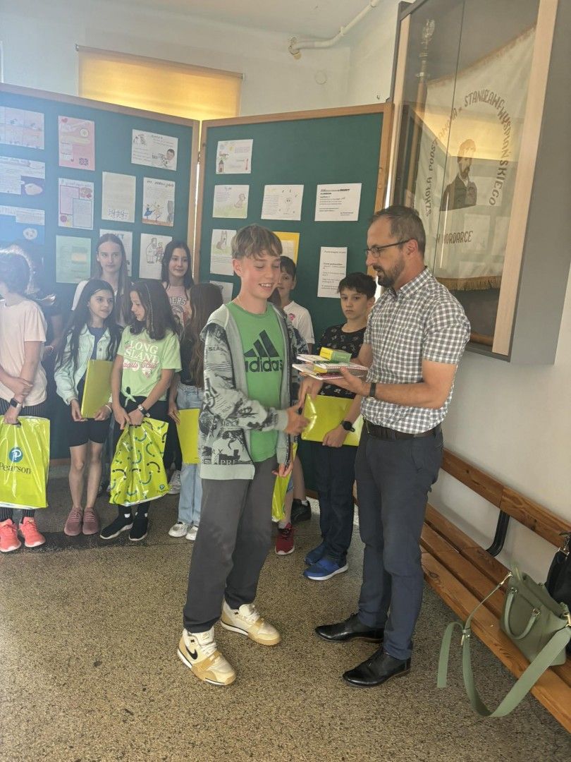 Uczeń przychodzi do szkoły, bo chce odnosić sukcesy. Niech otrzymane nagrody pomogą w dalszym rozwoju językowym.