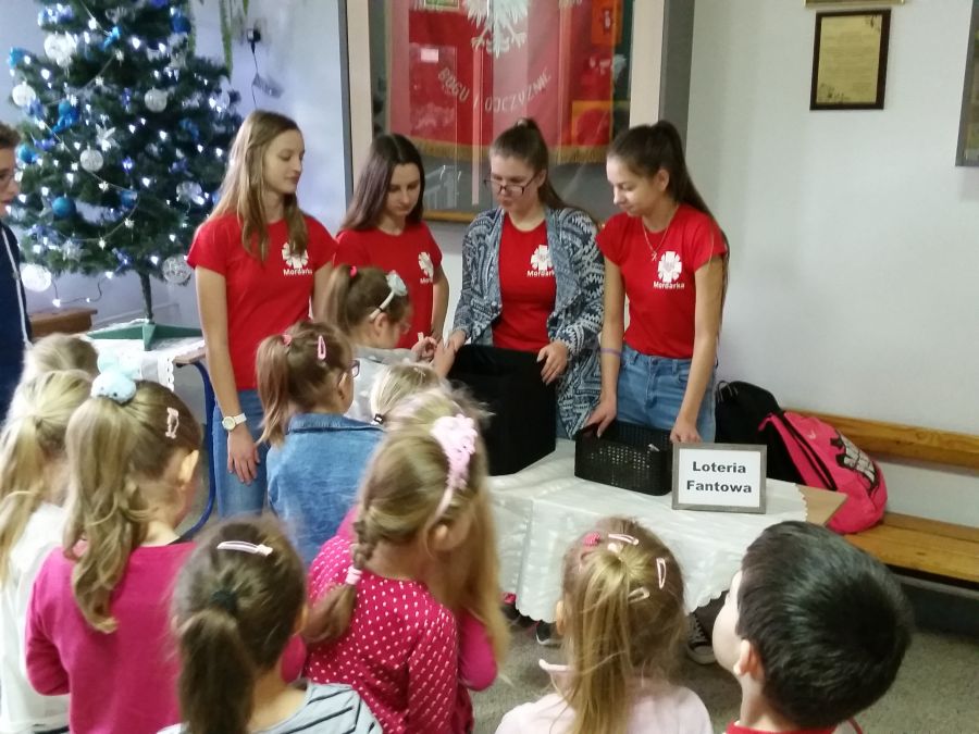 W dniu 12 grudnia w naszej szkole odbyła się loteria fantowa  zorganizowana przez Szkolne Koło Wolontariatu. Ku ogromnemu zaskoczeniu organizatorów prawie 600 losów rozeszło się w mgnieniu oka. Zebrane pieniądze w kwocie 1200 zł. zostaną przekazane Caritas Parafialnemu, który przeznaczy je na pomoc rodzinom i osobom najbardziej potrzebującym z naszej parafii. Wszystkim kupującym losy, za okazane serce składamy serdeczne „Bóg zapłać”.