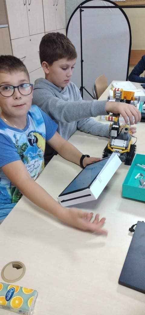 Najpierw sterowali i bawili się swoim robotem przy pomocy prostych komend: DO PRZODU, OBRÓT W LEWO, PODNIEŚ, a także wielu innych, potem za pomocą prostego w obsłudze kontrolera, który działa podobnie jak pilot w zdalnie sterowanych zabawkach, a następnie uczyli się jak zaprogramować robota. Korzystali z bloków komend w języku programowania Scratch i łączyli je ze sobą na ekranie jak puzzle. Zajęcia te były dla nich świetną nauką programowania poprzez zabawę oraz współpracą ze sobą. Zajęcia te mogły być zrealizowane dzięki sprzętowi zakupionemu w ramach grantu „Modelowej Szkoły” projektu HUMINE.