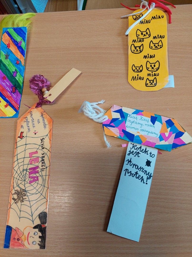 Wszystkie wykonane przez uczniów zakładki można oglądać w bibliotece szkolnej.