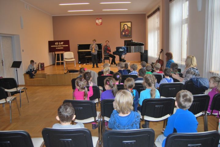 Dnia 11 lutego 2015r. przedszkolaki z Mordarki odwiedziły Państwową Szkołę Muzyczną w Limanowej. Specjalnie dla nich zorganizowany został koncert podczas, którego wystąpili uczniowie tej szkoły. Dzieci miały okazję zobaczyć i usłyszeć m.in. takie instrumenty jak: skrzypce, kontrabas, fortepian, pianino, gitara, akordeon, trąbka, flet poprzeczny. Przedszkolaki poznawały budowę i sposób wydobywania dźwięków z poszczególnych instrumentów. Wspaniałe było to, że każde dziecko mogło spróbować gry na wybranych przez siebie instrumentach. Dzieci były bardzo zainteresowane i wykazywały dużą aktywność.