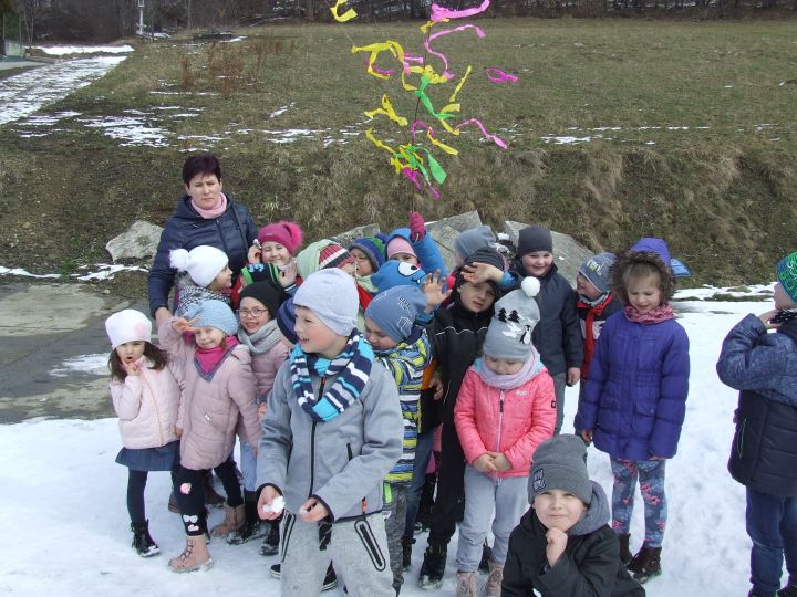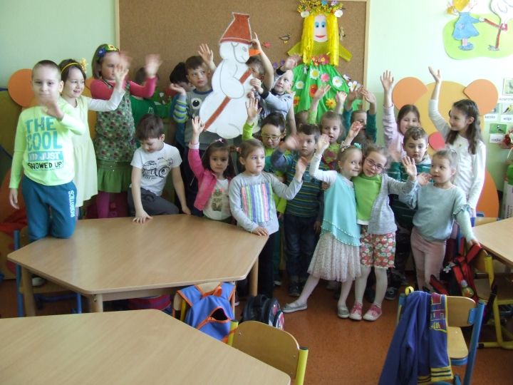 W środę 21 marca dzieci z naszego przedszkola uroczyście powitały Wiosnę. Towarzyszyły temu wesołe zabawy, tańce i piosenki. Przedszkolaki wykonały wspólnie piękną dekorację w swojej sali. Wszędzie dominował oczywiście kolor zielony. Pojawiła się przy tej okazji gromada pomocników Wiosny - pszczółek, biedronek, zajączków, żabek i... Bardzo oczekiwaną częścią dnia było wyjście nad rzekę, podczas którego przedszkolaki pożegnały Zimę, a wraz z nią swojego przyjaciela Janka – Bałwanka. Do zobaczenia znów za rok....!