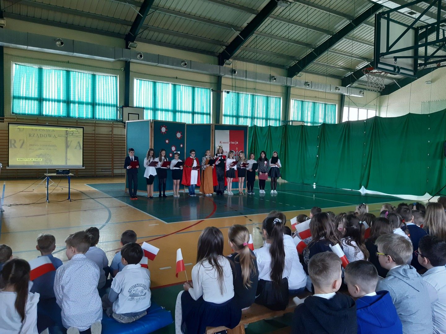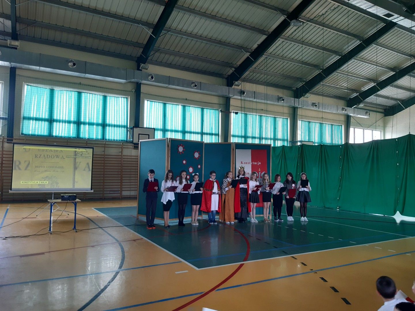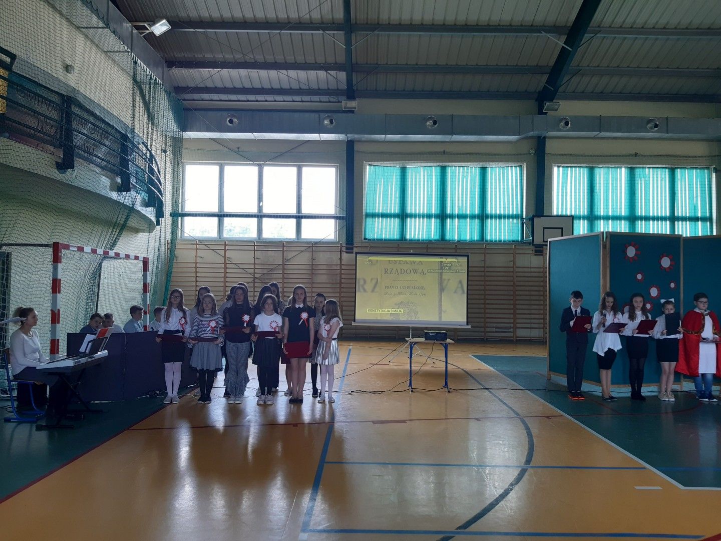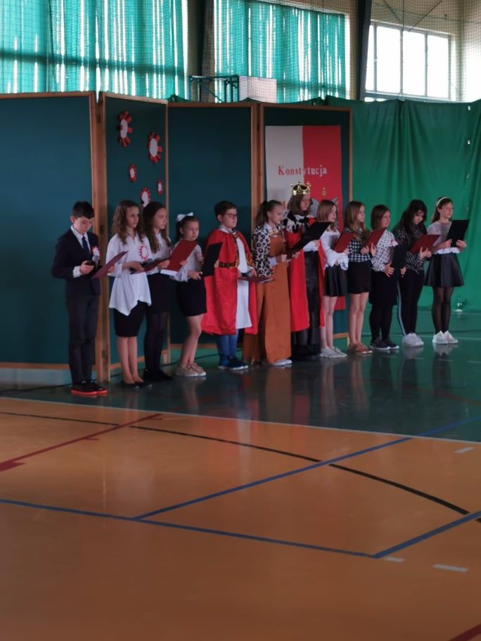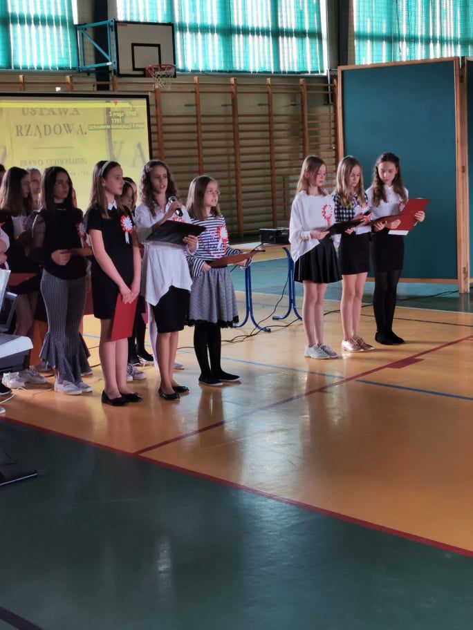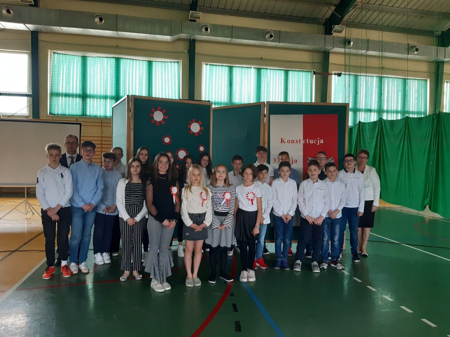 W naszej szkole odbyła się akademia poświęcona rocznicy uchwalenia Konstytucji 3 Maja. Klasa Vb i chór szkolny przygotowali montaż słowno - muzyczny. Uczniowie zorganizowali sejmik szkolny, a treści dotyczyły historii sejmu czteroletniego, a także wartości, które decydują o naszej tożsamości narodowej. Uczcili również symbole narodowe. To była ważna lekcja patriotyzmu dla całej społeczności uczniowskiej.