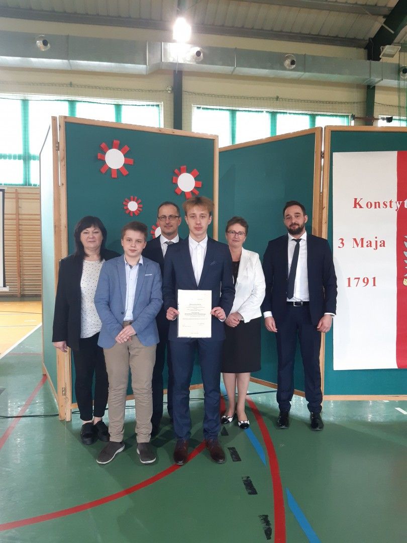 Głos zabrał również Pan Dyrektor, który udzielił uczniom pochwał, tytułów "Uczeń pozytywnie nastawiony", podsumował wszystkie osiągnięcia w bieżącym roku szkolnym.