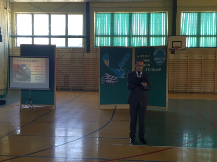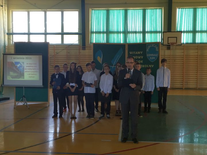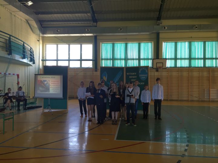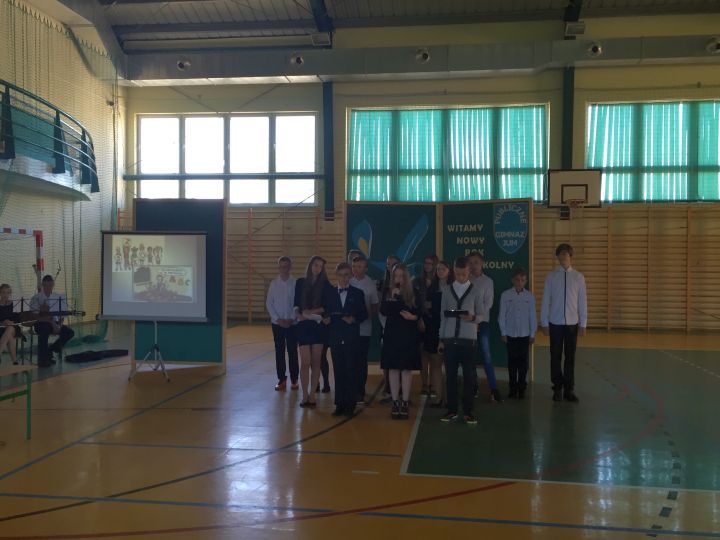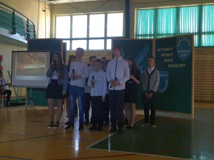 Jak każdego roku inaugurację nowego roku rozpoczęliśmy od Mszy Świętej, którą odprawił Proboszcz Zbigniew Stabrawa, a następnie przeszliśmy do szkoły, gdzie wzięliśmy udział w akademii upamiętniającej rocznicę wybuchu II wojny światowej. To we wrześniu 1939 roku Polska została zaatakowana przez dwóch wrogów: hitlerowskie Niemcy i bolszewicki Związek Radziecki. I to zagrożenie zdołaliśmy pokonać, mimo tego, że przyszło nam kolejny raz, przez długie sześć lat walczyć z okupantem. Wielkie poświęcenie, determinacja i mądrość tamtego pokolenia Polaków pozwala nam realizować dziś nasze cele. Pamiętając o tym dążmy do własnego rozwoju, dążmy do mądrości, która jest w stanie budować naszą przyszłość, czego życzymy Wam drodzy uczniowie i samym sobie.