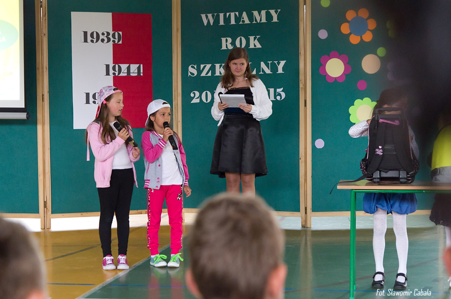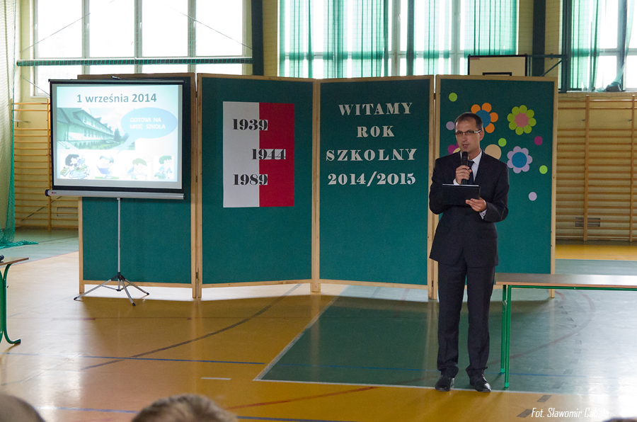 Słowa skierowane przez dyrektora mgr Pawła Ciułę do społeczności szkolnej informowały o zmianach, jakie zaszły w bazie i wyposażeniu szkoły oraz priorytetach w pracy nakreślonych przez instytucje państwowe i samorządowe. Dyrektor wskazywał zadania na rok szkolny 2014/2015, życząc równocześnie wszystkim dużo wytrwałości i sukcesów.