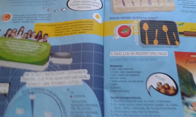 Artykuły na temat „Nastolatek w kuchni” ukazały się już w numerze 10/2017, czyli były dostępne w kioskach od 18 maja, materiał o hejcie będzie w numerze 12/2017 - w sprzedaży od 14 czerwca, zaś quiz o warzywach i owocach oraz ciekawostki o różnych miejscach w Polsce w numerze 15/2017 (w sprzedaży od 27 lipca) i 16/2017 (w sprzedaży od 10 sierpnia).