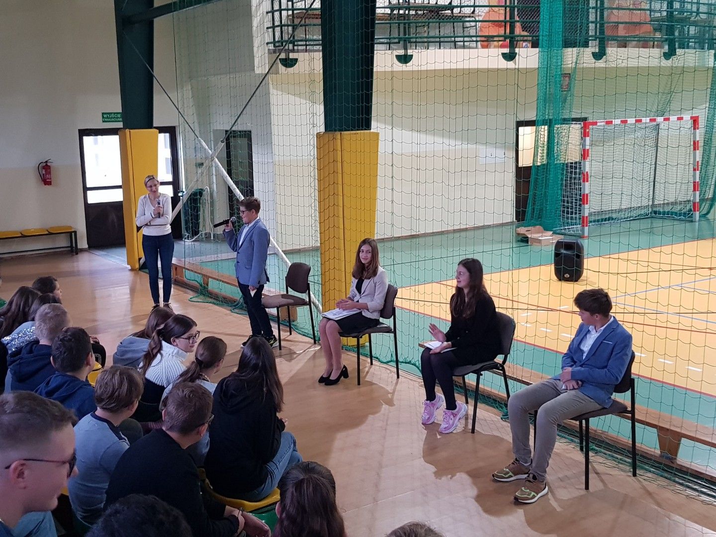 W czwartek odbyła się debata wyborcza, na którą pytania przygotowali sami uczniowie. A w piątek głosowanie za pomocą aplikacji Mentimeter. Zwyciężył Wojciech Ryś z klasy VII, jego zastępcą została Zuzanna Jeż z klasy VI b, a członkami Gabriela Golonka (VII) i Maksymilian Śliwa (VI b). Wszystkim serdecznie gratulujemy i życzymy owocnej pracy w bieżącym roku szkolnym.
