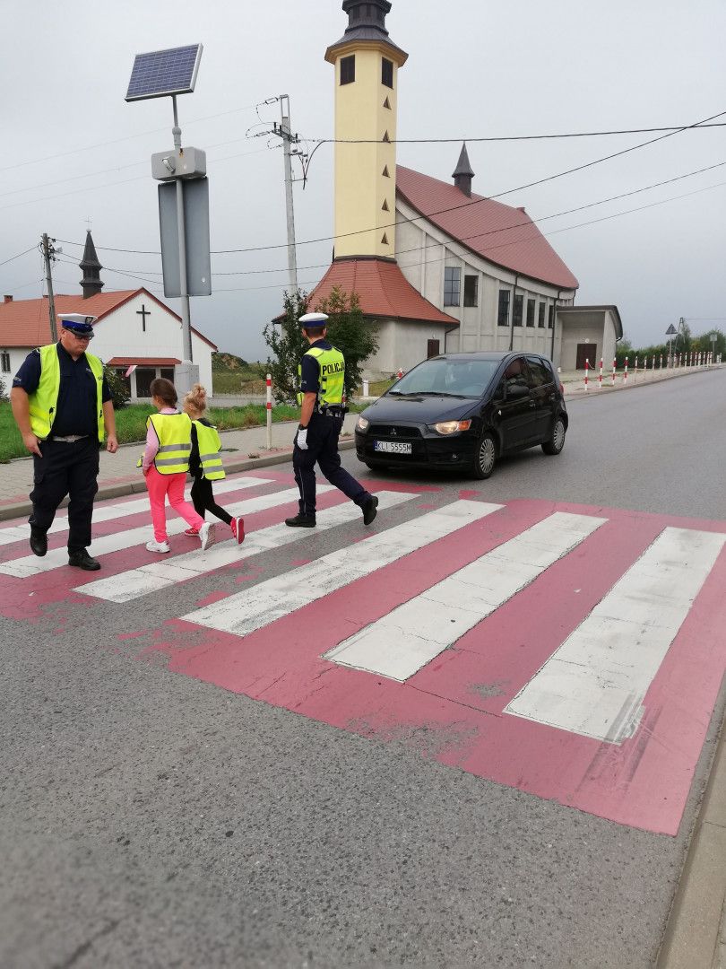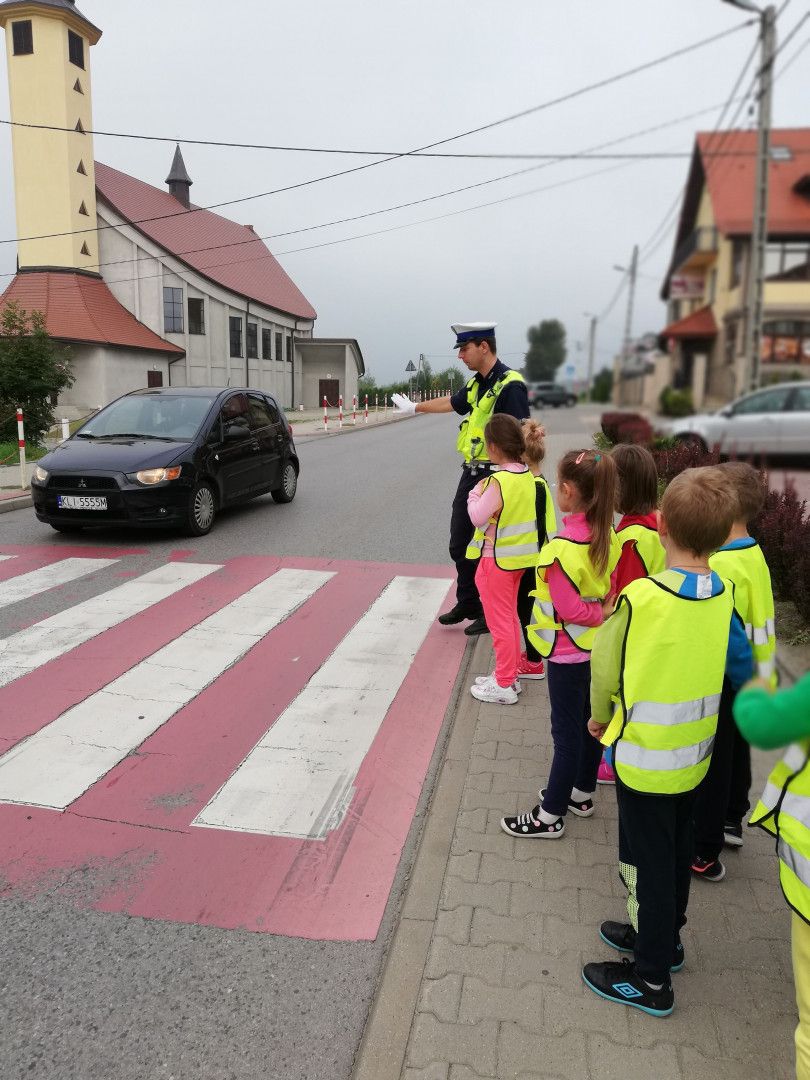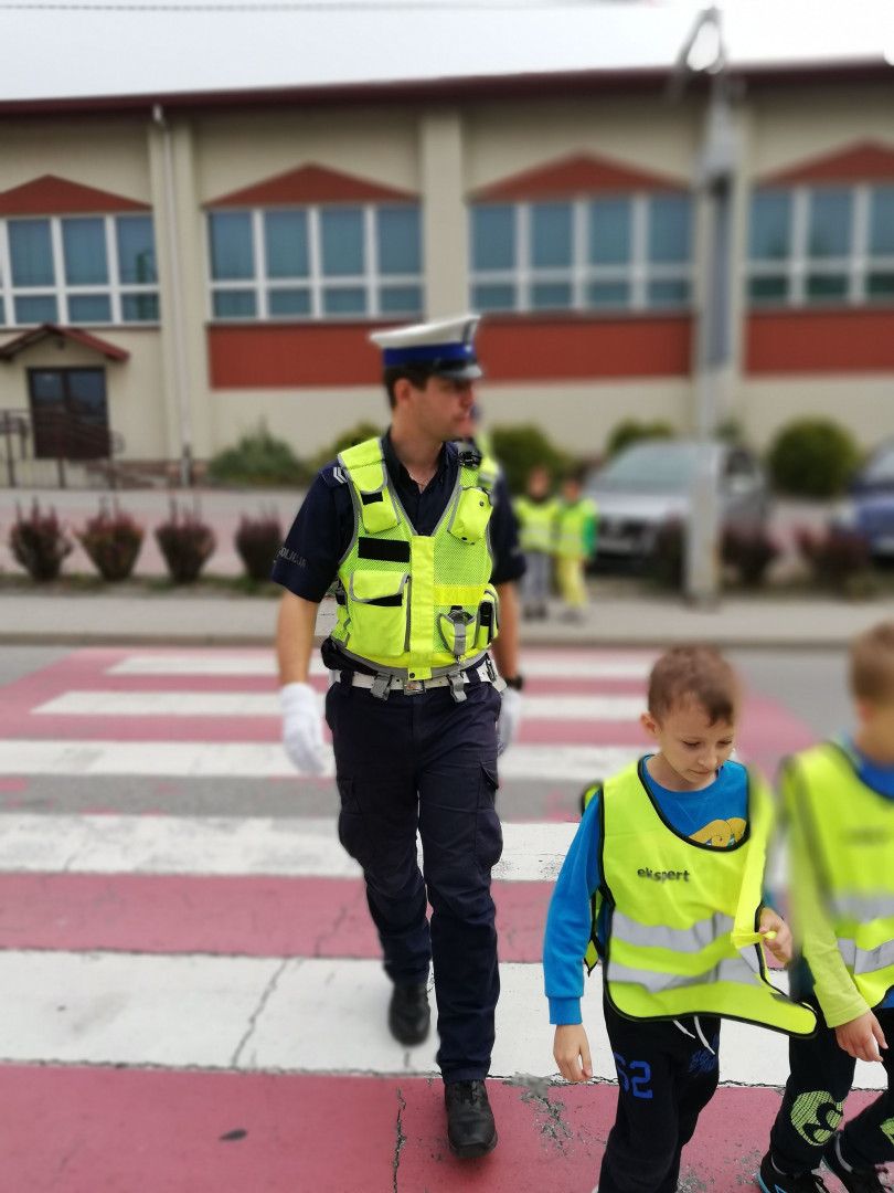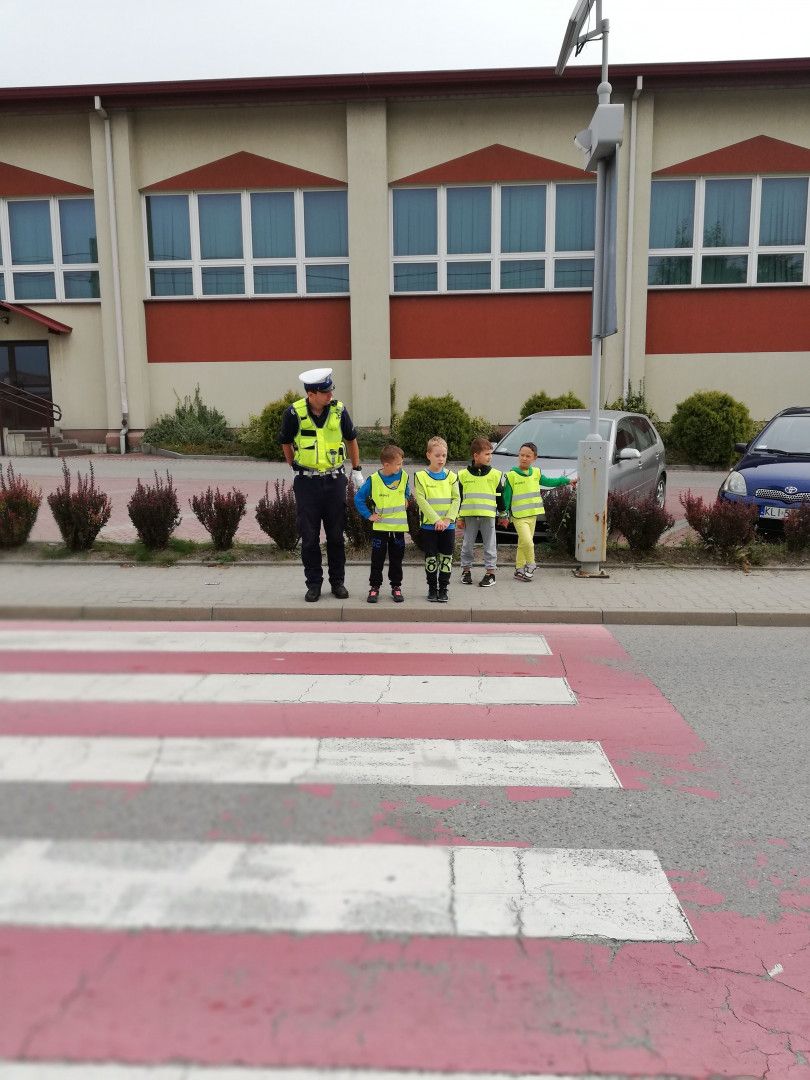 Spotkanie odbyło się 14 września, podczas którego dzieci miały okazję porozmawiać z policjantami o zachowaniu bezpieczeństwa w drodze do szkoły i poza szkołą. Policjanci szczegółowo omówili zasady bezpiecznego poruszania się po drogach podkreślając, jak ważną rolę pełnią elementy odblaskowe, które każdy powinien posiadać. Kilkakrotnie apelowali do uczniów, aby zawsze pamiętali o używaniu kamizelek czy innych elementów odblaskowych podkreślając, że to wpływa na lepszą widzialność, co z kolei zwiększa bezpieczeństwo poruszających się pieszych poboczami dróg, a niejednokrotnie może nawet „ uratować życie”.
