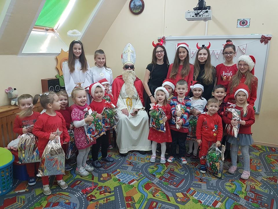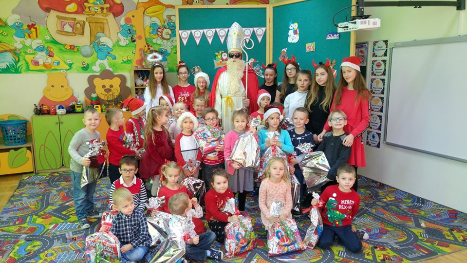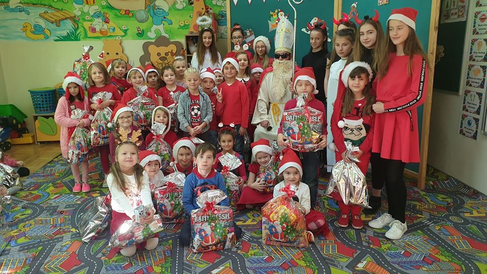 W tym dniu Mikołaj również odwiedził najmłodszych uczniów naszej szkoły, a mianowicie przedszkolaki. Od samego rana wszystkie dzieci z niecierpliwością czekały na przyjście Mikołaja, każde dziecko chciało go zobaczyć. W szkole rozlegał się dźwięk dzwoneczka….