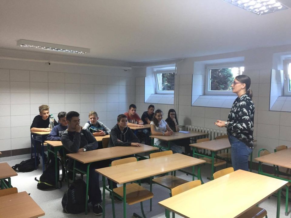 W dniu 9 października w naszej szkoła gościła Pani Elżbieta Cięciel z Poradni Psychologiczno-Pedagogicznej. Spotkała się z klasami: Va, VI, VII a, III B. Głównym celem warsztatów było wypracowanie zasad bezpiecznego i kulturalnego korzystania z sieci. Uczniowie uświadomili sobie, jakie mogą być konsekwencje przemocy w Internecie dla sprawcy i ofiary. Dowiedzieli się także, gdzie szukać pomocy w przypadku zagrożenia uzależnieniem od Internetu.