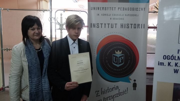 W tym miejscu pragnę także pogratulować wielkiego sukcesu samemu Kamilowi. Wiemy: zarówno ja, Ty, ale także wszyscy inni, którzy przygotowują się do konkursów przedmiotowych, jak trudno znaleźć się wśród 20 najlepszych. Ty jednak udowodniłeś, że nie jest to niemożliwe. I to nie jeden, ale wiele razy. Wiem, że im bardziej zagłębiałeś się w tematykę historyczną,  tym bardziej Cię ona pociągała i interesowała. Życzę Ci zatem Kamilu pasji do tego wszystkiego,  co chcesz w życiu robić  i wielu, wielu sukcesów.