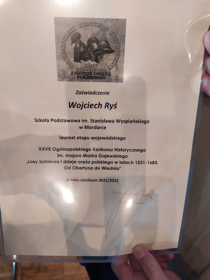 Pragniemy pogratulować rodzicom Wojtka Państwu Agacie i Pawłowi Ryś sukcesu syna i podziękować za współpracę z nauczycielem merytorycznym.