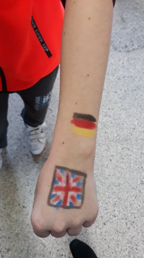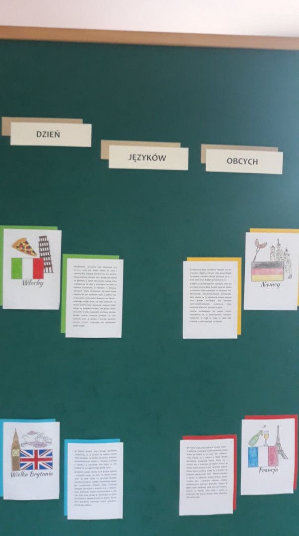 Bardzo dużym powodzeniem, szczególnie wśród najmłodszych dzieci, cieszyła się akcja "Flagi na twarz". Uczniowie wybierali sobie kraj, którego flagę chcieliby mieć namalowaną na twarzy, a uczniowie klasy 7 spełniali ich marzenie. W tym dniu podsumowane zostały również różnego rodzaju szkolne konkursy zarówno z języka angielskiego, jaki i niemieckiego. Pan Dyrektor wręczył najlepszym uczniom dyplomy oraz nagrody.