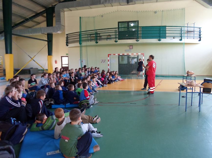 Dnia 25 września br. pod hasłem „Szanuj zdrowie – ratuj życie” odbył się program o charakterze profilaktyki uzależnień wraz z pokazem i nauką udzielania pierwszej pomocy przedmedycznej dla uczniów klas IV-VI.