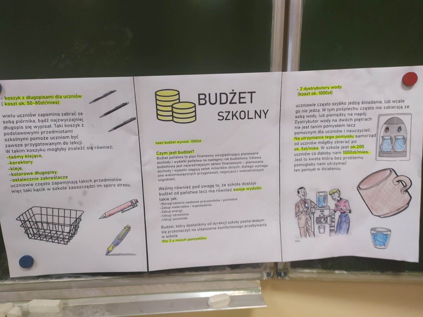 Uczniowie poznając zagadnienia obejmujące wiedzę na temat budżetu – od budżetu domowego, poprzez szkolny, samorządowy i krajowy budżet – jego planowanie, poznawali mechanizmy wpływu na jego realizację przez przedstawicieli społeczeństwa. Doskonałym elementem poznania zasad i zdobycia umiejętności wpływu na realizację budżetu obywatelskiego stała się realizacja wspomnianego projektu edukacyjnego „Na co przeznaczyć szkolny budżet obywatelski?”